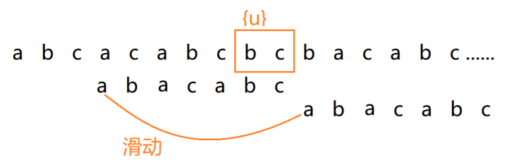 若存在,将模式串滑动到{u'}与主串中的{u}对齐的位置,重新匹配;