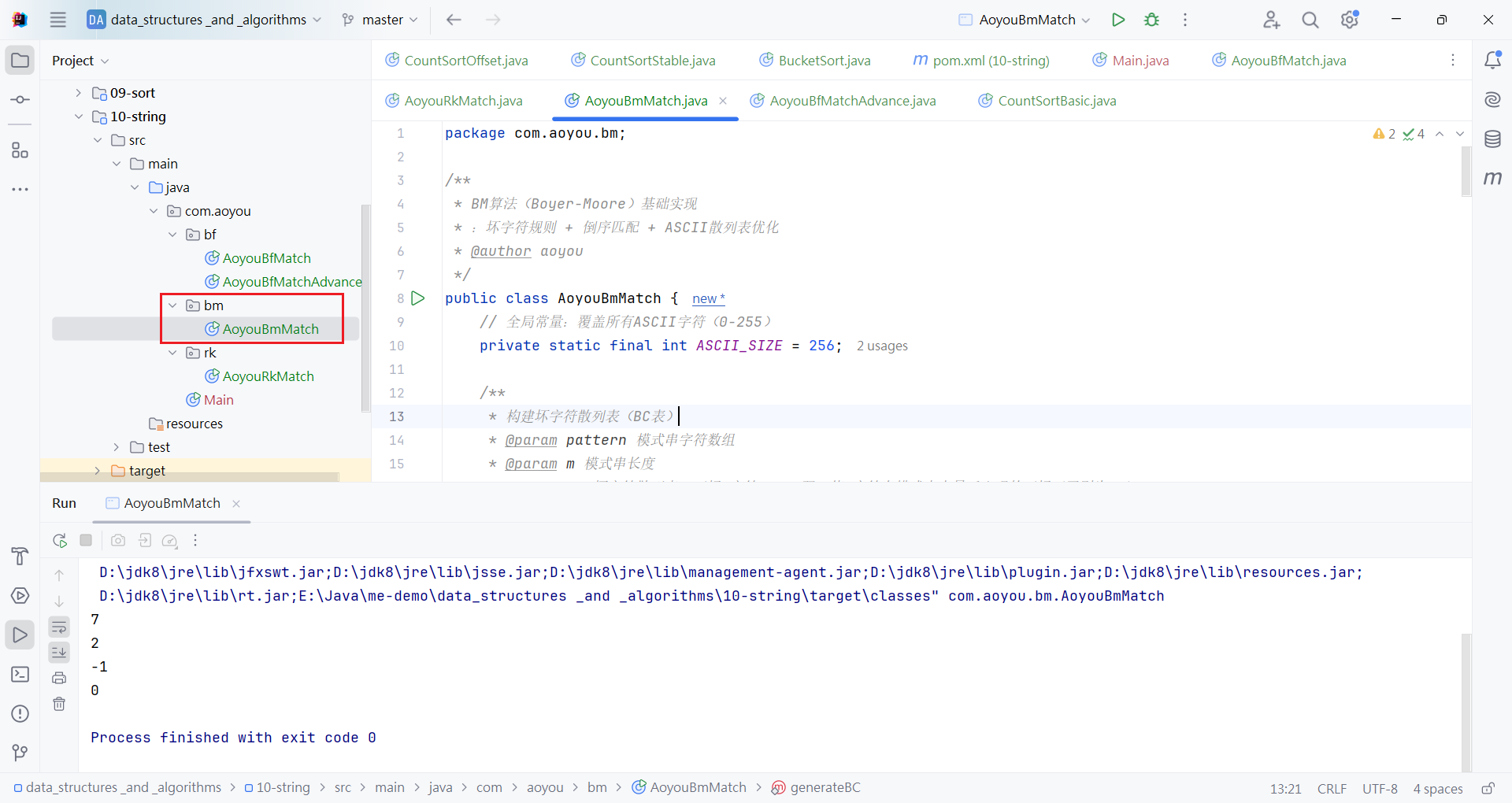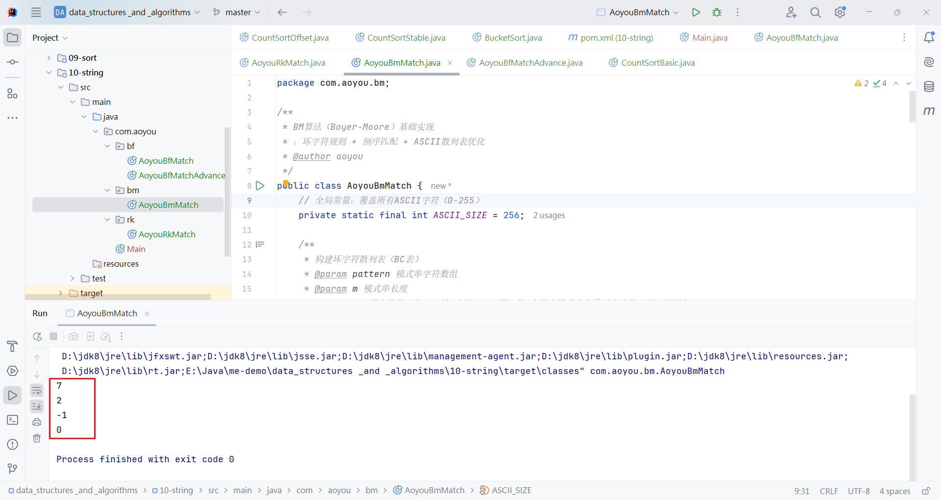 System.out.println(bmMatchByBadChar(main4, pattern4)); // 输出0