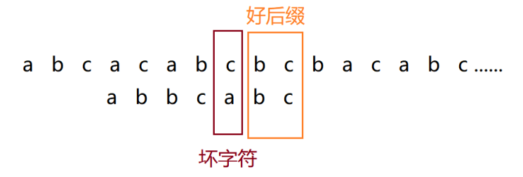 倒序匹配时,坏字符之前已经匹配成功的模式串后缀子串 ,称为好后缀(记为{u});好后缀规则是为了利用已匹配的有效信息,进一步优化滑动位数,避免漏匹配。