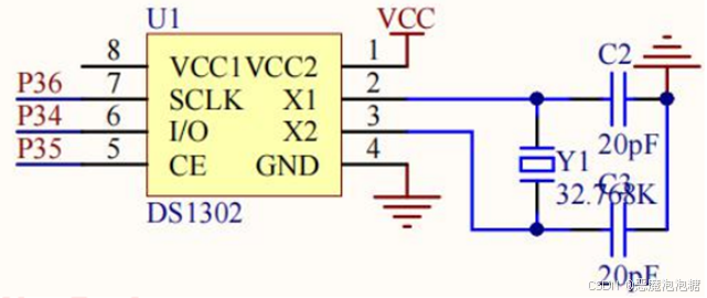 2、3:外部晶振引脚,通常接32.768K的晶振给时钟提供晶振源