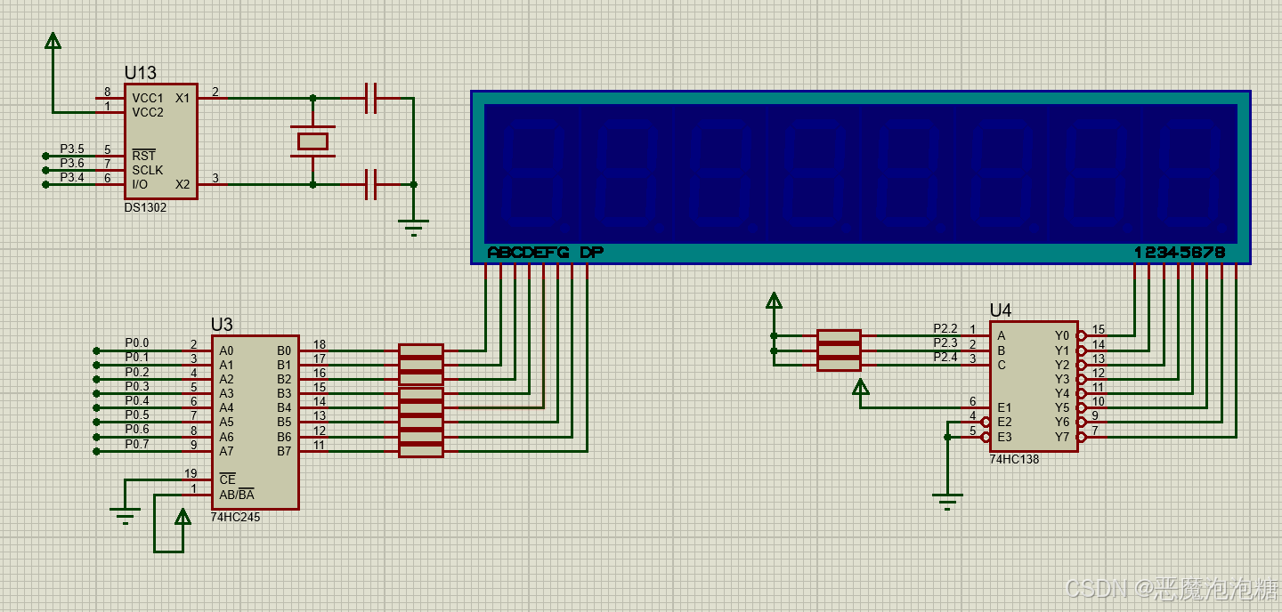 DS1302总共有12个寄存器,其中有7个是日历时钟相关的,他们存放的数据是以BCD编码格式进行存入的。