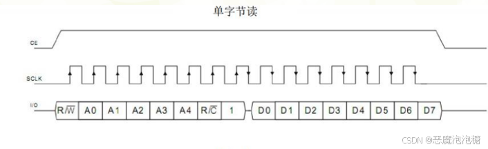 读时序:先写入命令字节->再在SCLK下降沿的时候读取数据