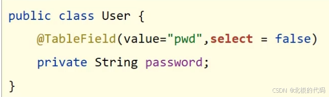 如密码字段在执行的时候,会在前台进行展示,这样是完全不合理的,因此我们可以设置select设置属性是否参与查询