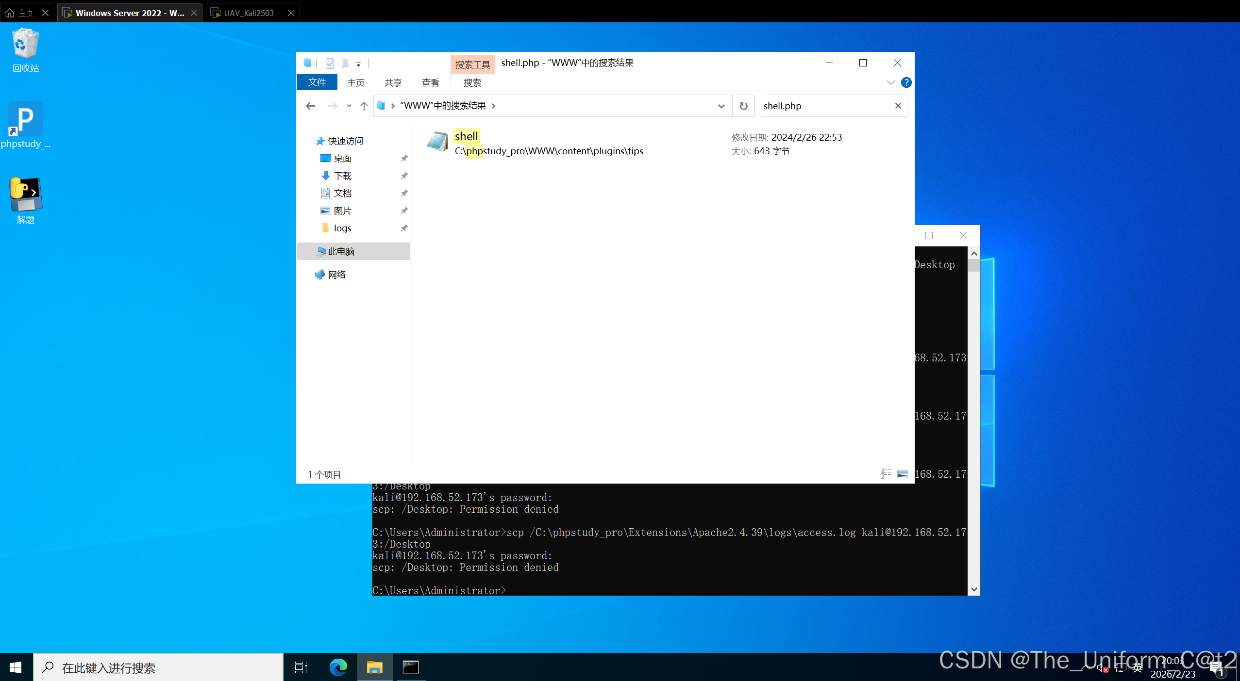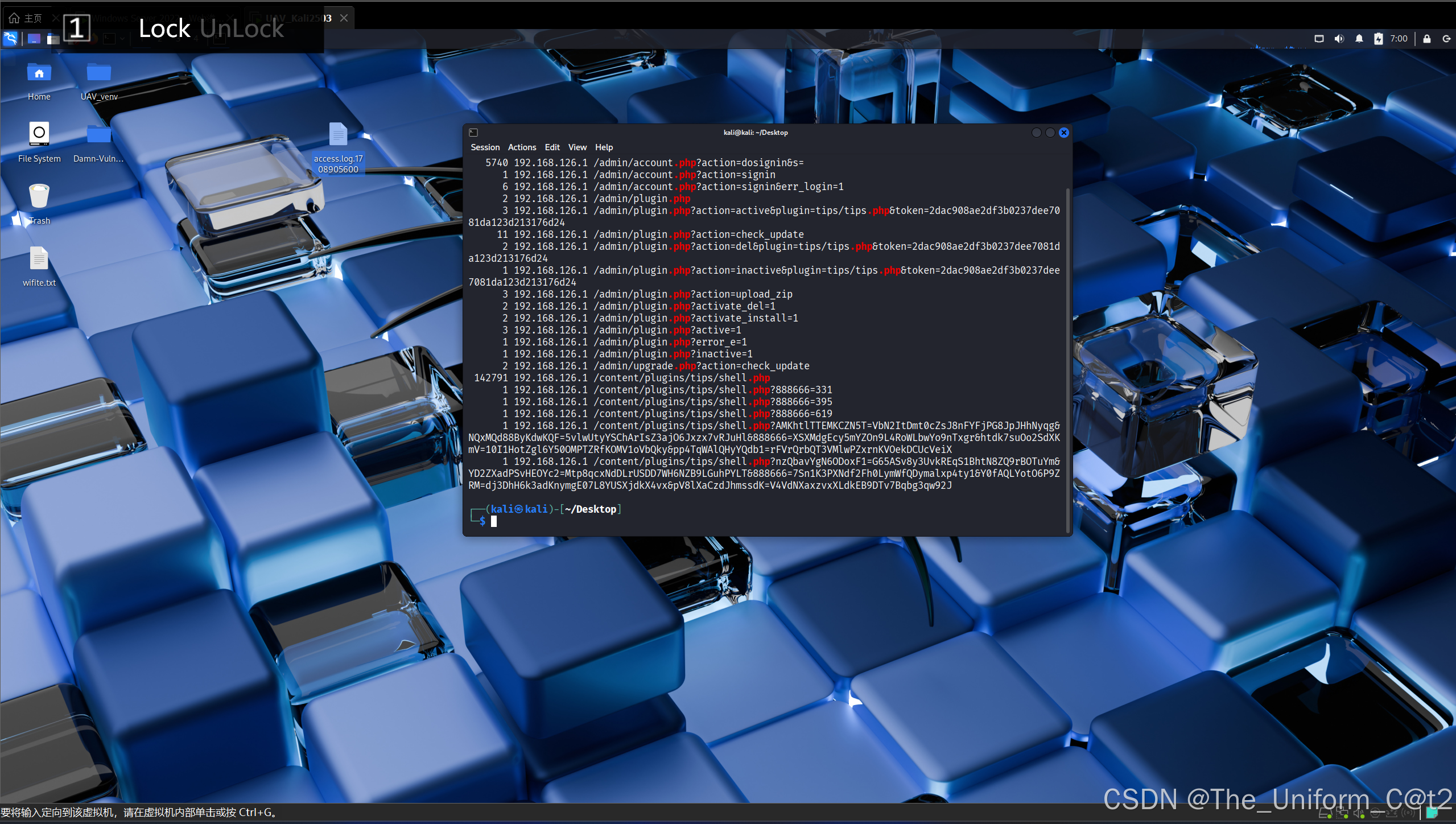 判断这个IP(192.168.126.1)即为攻击者的IP,因为放入了一个shell.php
