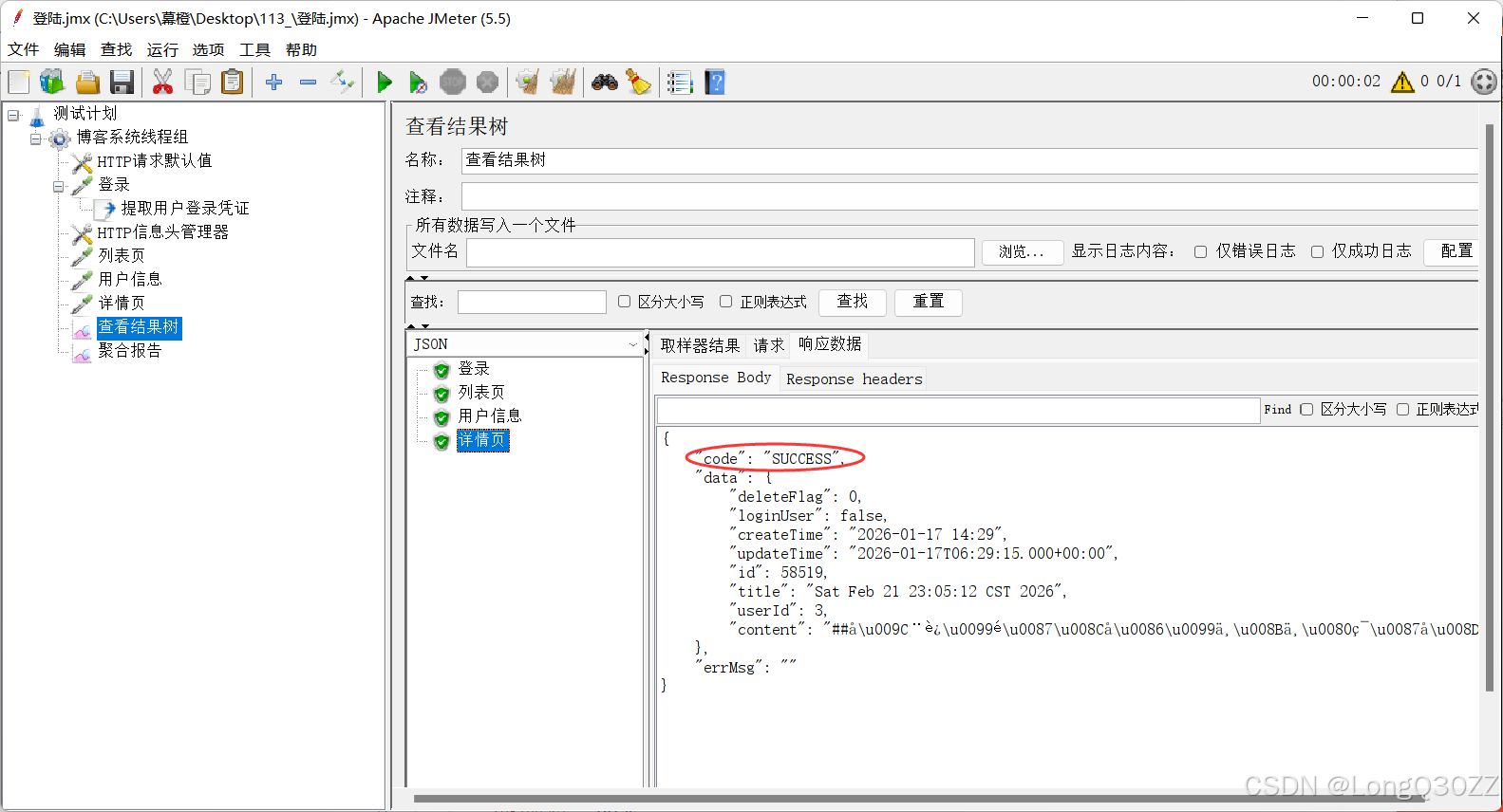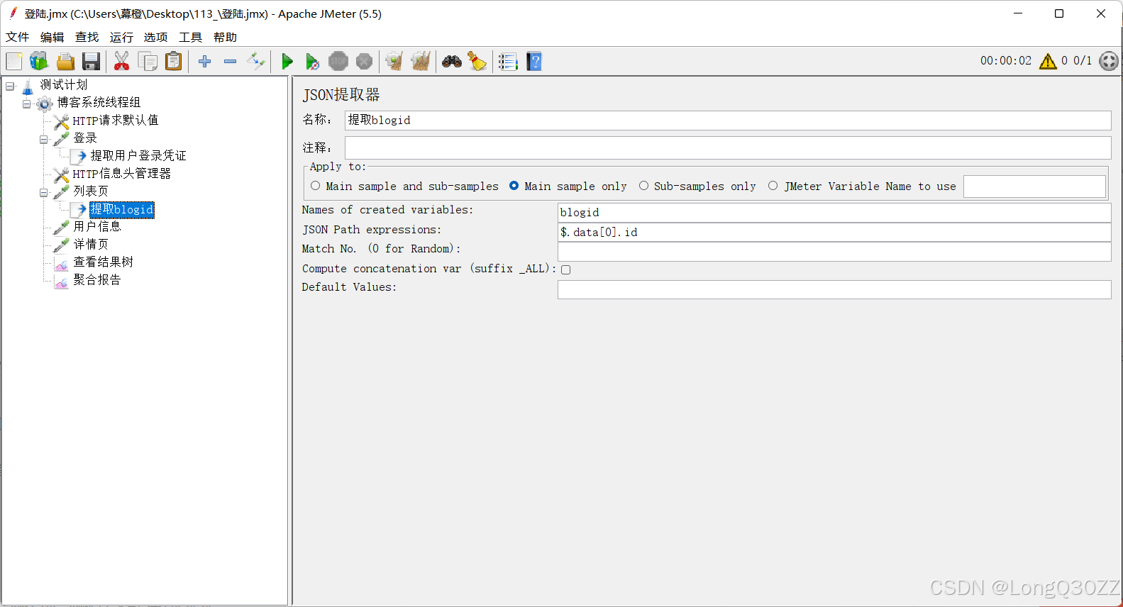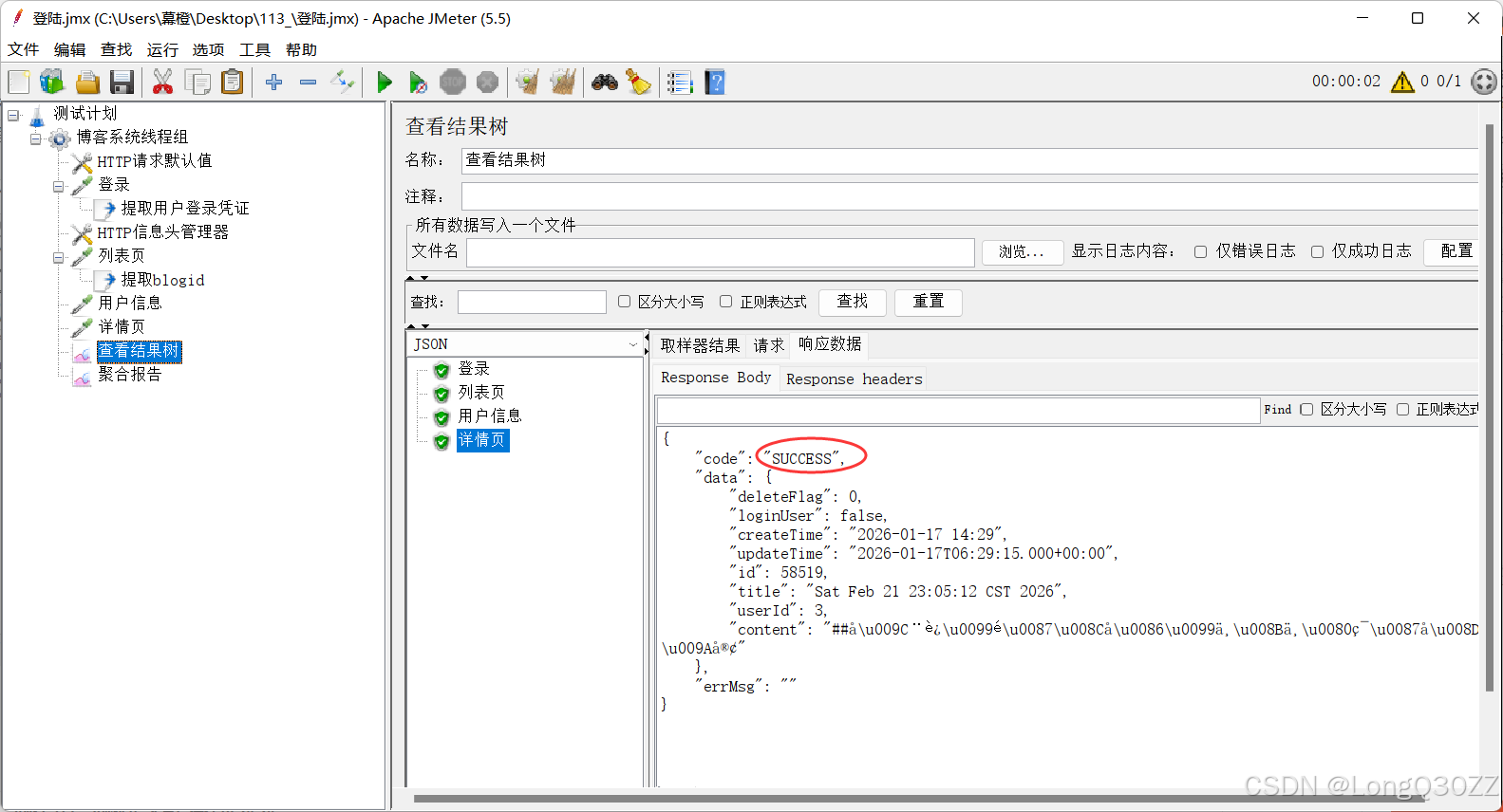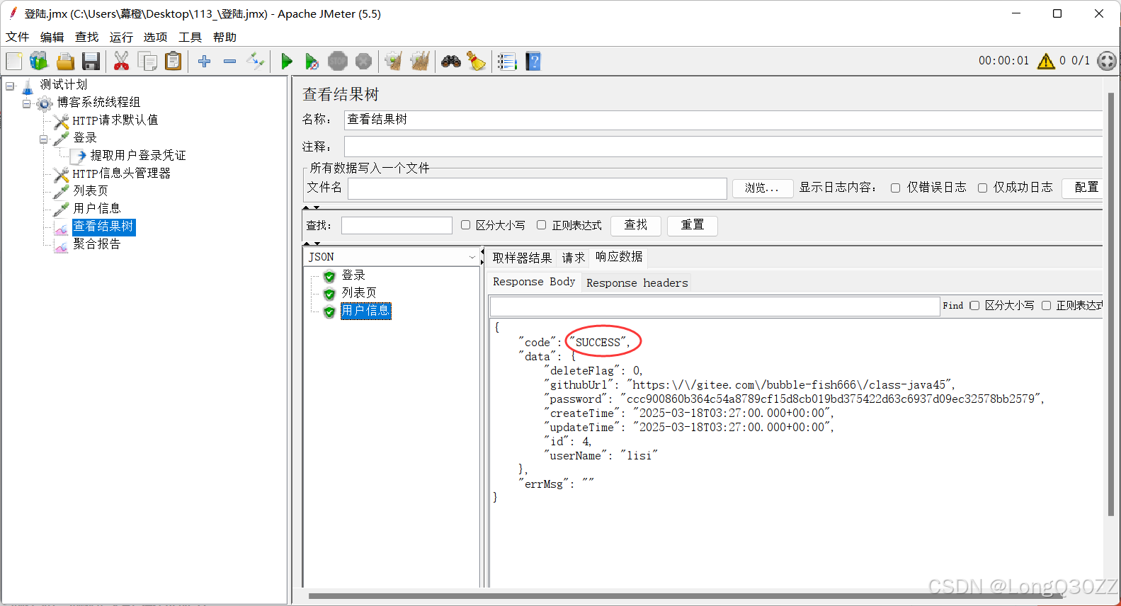 5.1在JMeter里测试博客登录接口