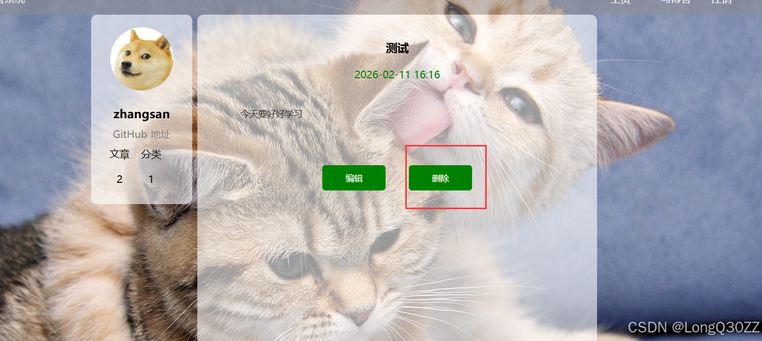 在博客详情页中点击自己发布的博客,就可以进入到详情页里面删除自己写的博客