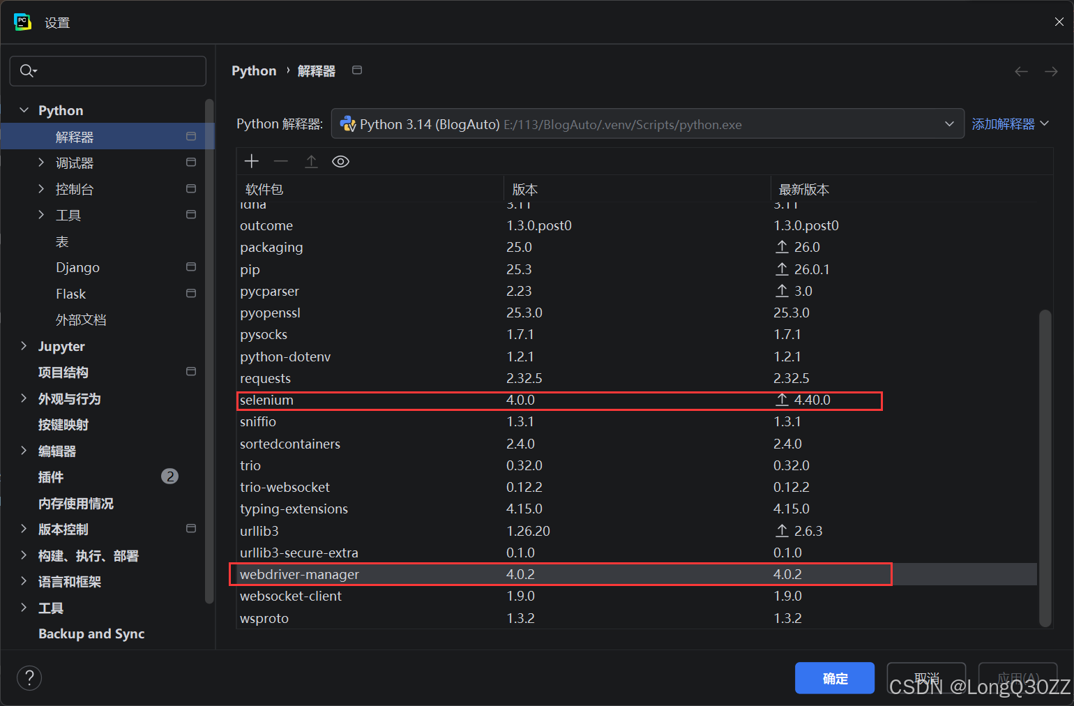 安装selenium库,本次用的是4.0.0版本。webdriver-manager用的是4.0.2版本