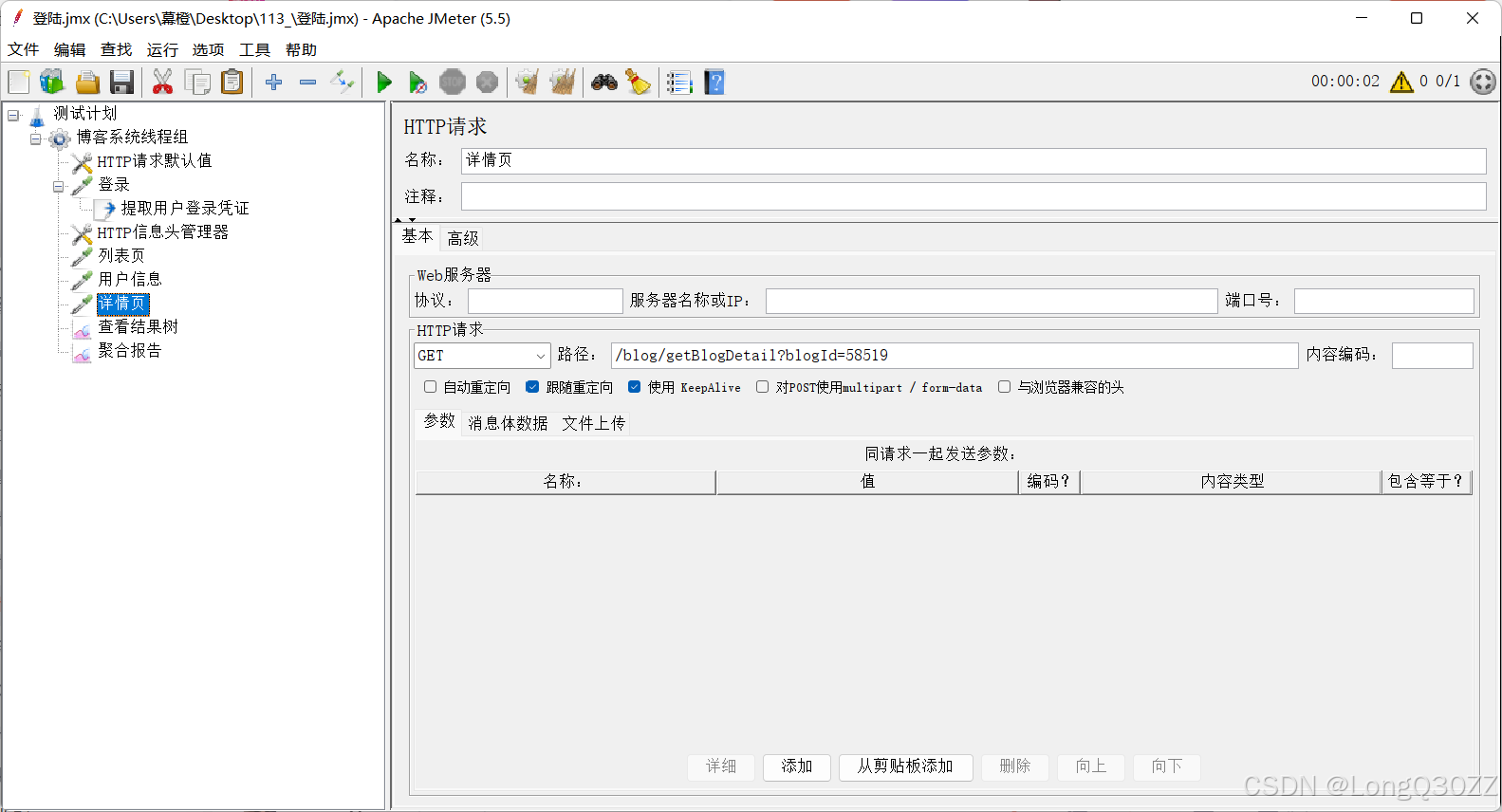 5.3在JMeter里测试博客详情页接口