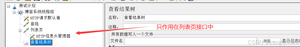 把HTTP信息头管理器移动到列表页中,那么HTTP信息头管理器只作用在列表页接口中