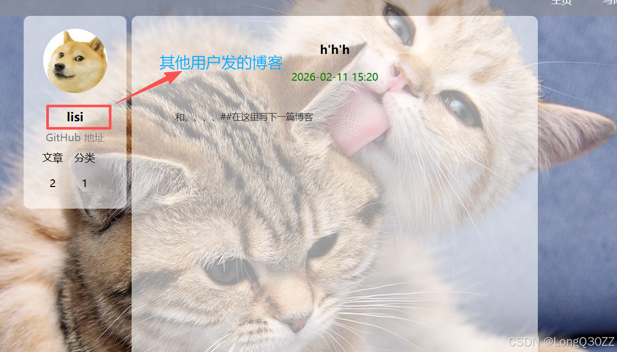博客详情页里面会显示用户的名称,文章的数量,博客的内容