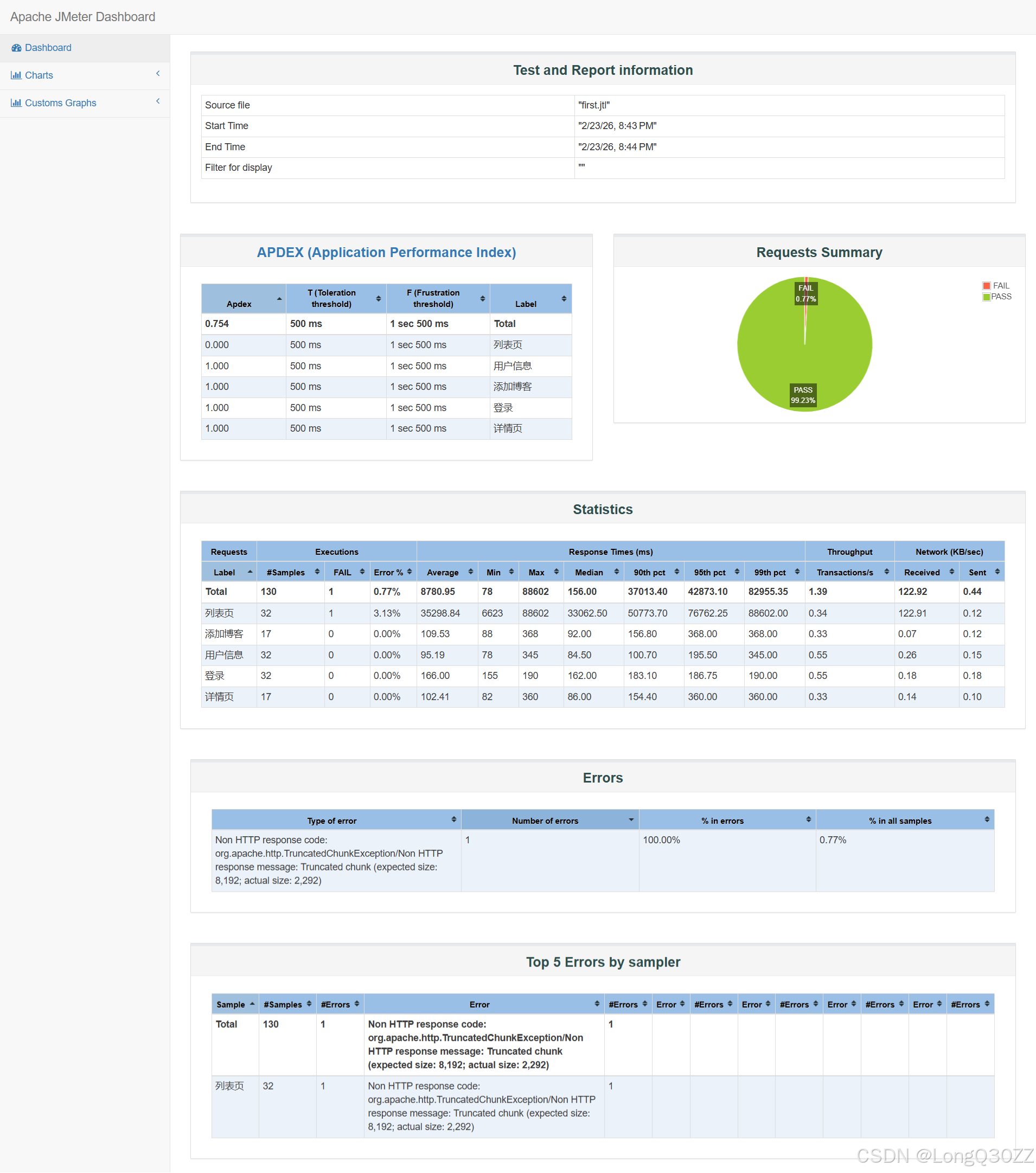 JMeter测试报告是⼀个全面而详细的⽂档,它提供了关于测试执⾏结果的详细信息,帮助用户全面评