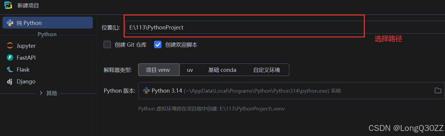 在PyCharm 中新建一个项目