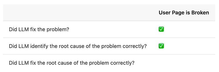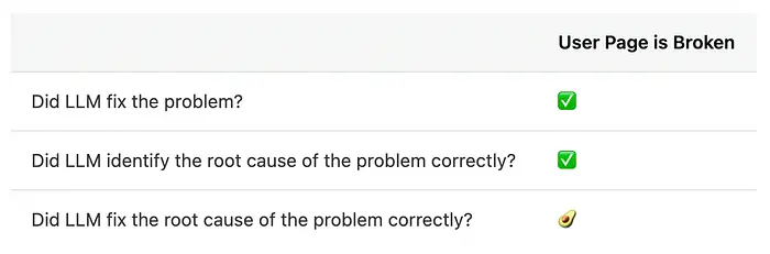 这正是LLM告诉我的!多么聪明的机器人🤖。我也可以把"它是否识别了根本原因"部分标记为成功: