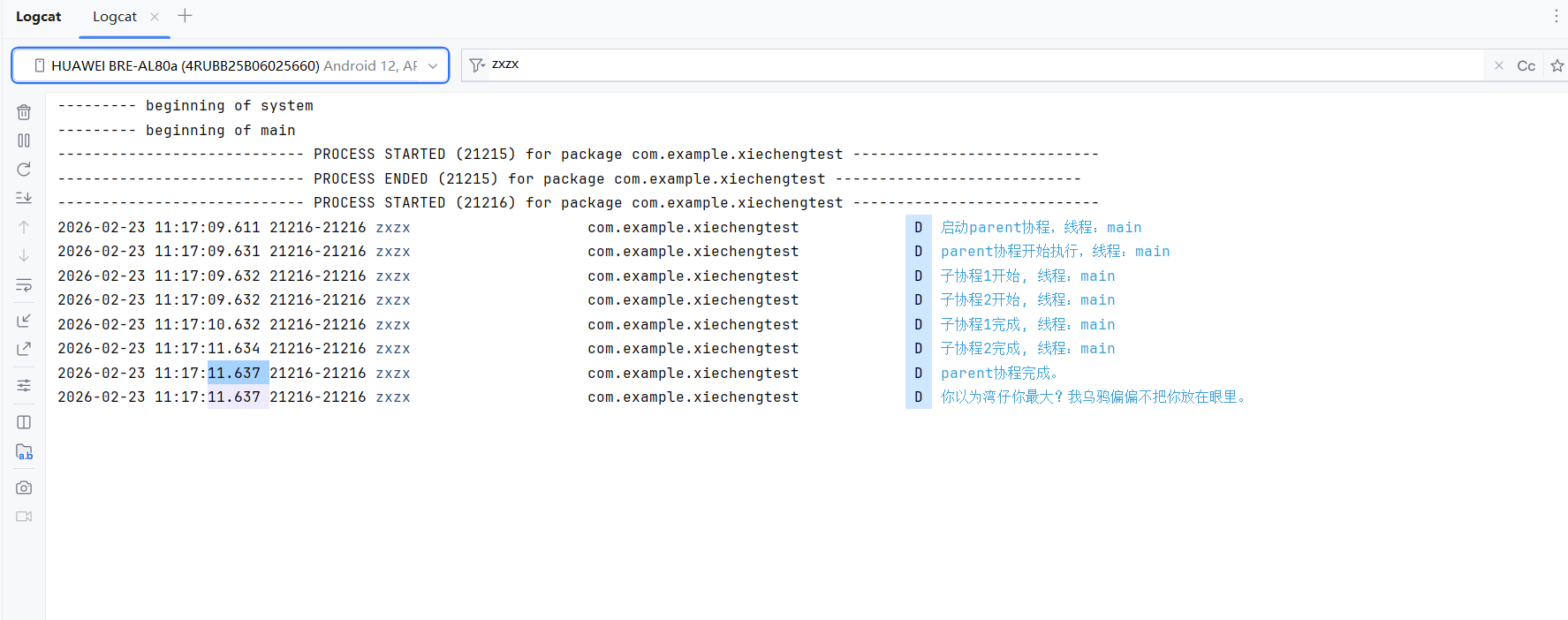 Log.d("zxzx", "parent协程开始执行,线程:${Thread.currentThread().name}")