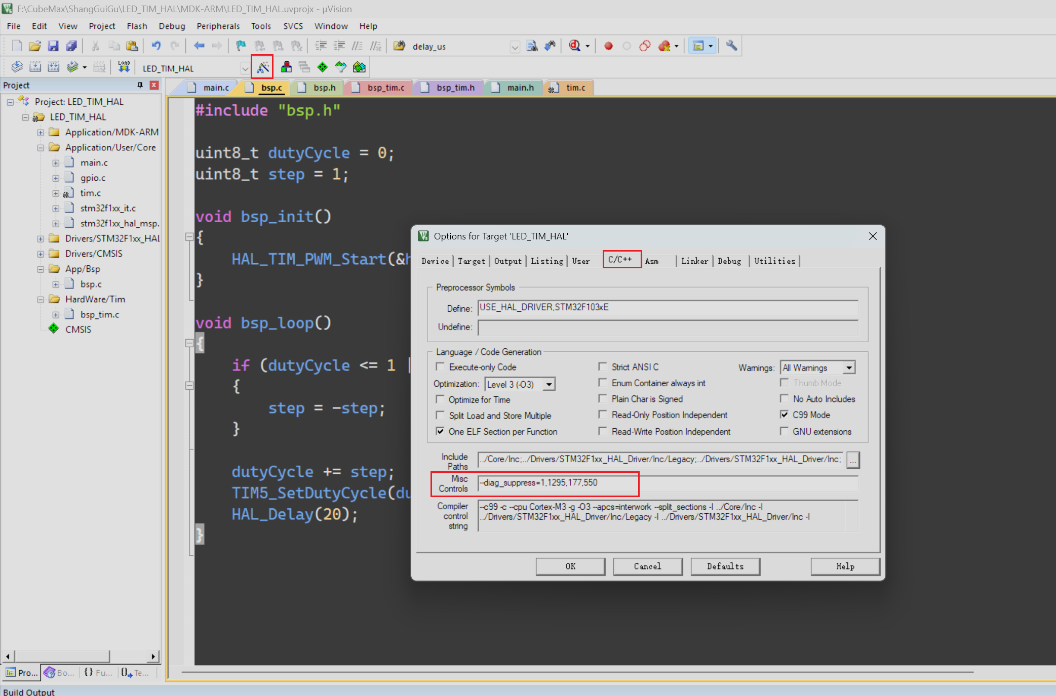 在进行代码调试时我们会发现同样的代码风格,在其它的编译器中不会引发警告,但是在Keil中就会引发警告,其中的有些警告较为严格,这不难理解是因为单片机片上资源有限,编译器不希望我们浪费太多资源,但是这些警告往往会在代码调试时扰乱你的视线,因此在这里分享一下如何屏蔽掉哪些没必要的警告,以减少代码调试时的干扰