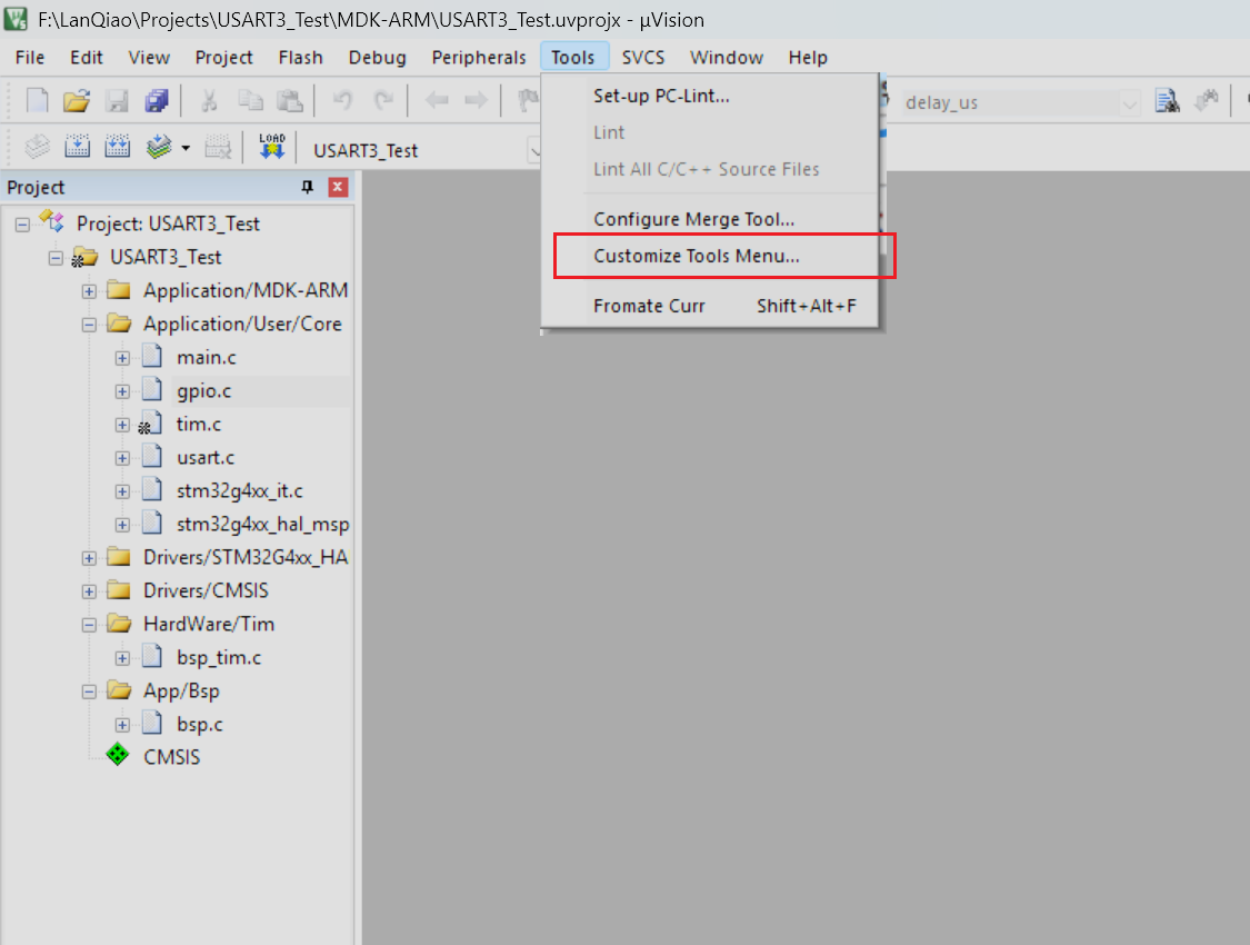 接下来就是软件的配置操作了,首先我们点击软件顶部栏的Tools选项,在弹出的选项中选择Customize Tools Menu选项