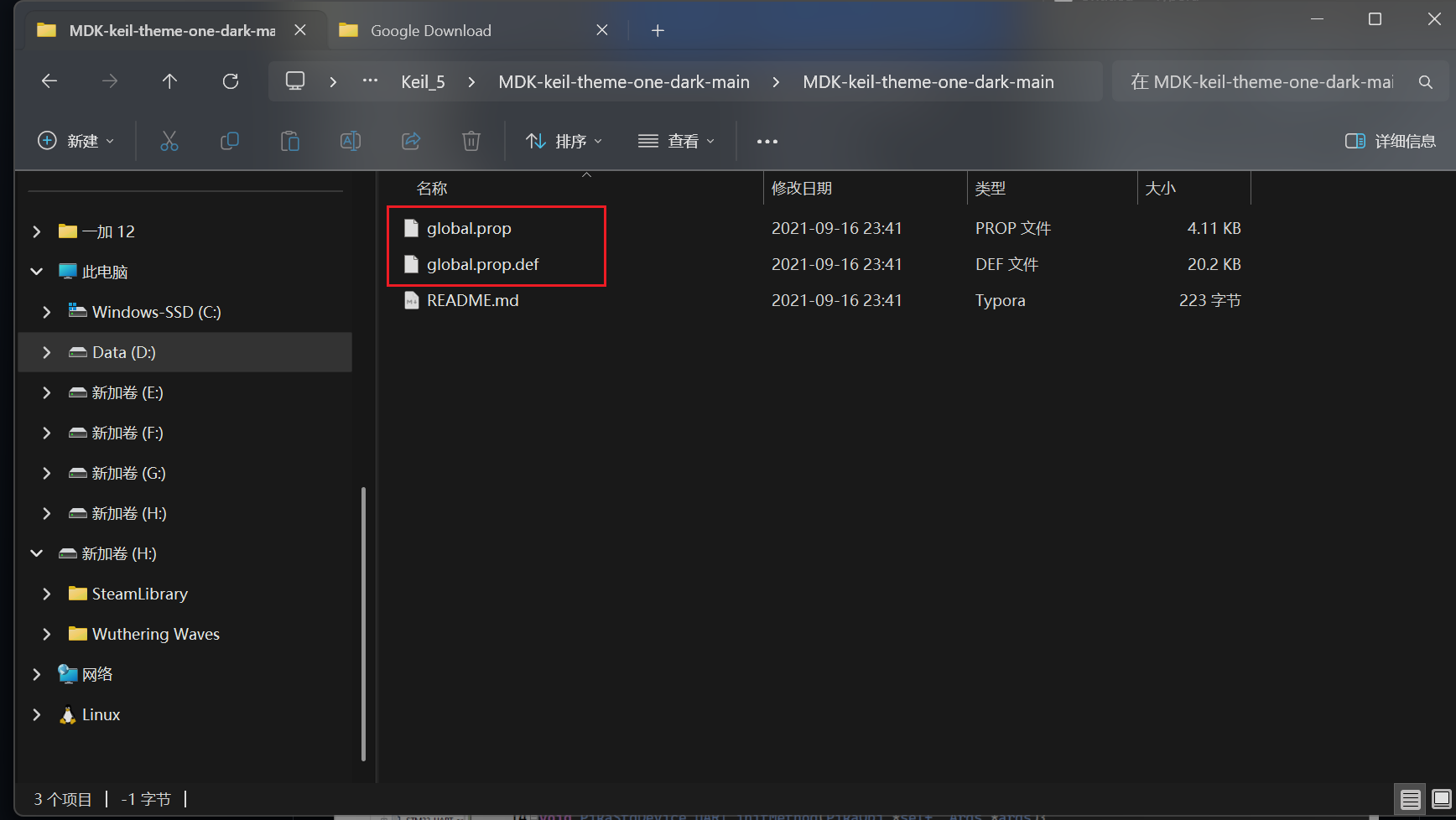 项目下载完成后解压即可在文件夹中看到三个文件,此时我们复制前两个文件
