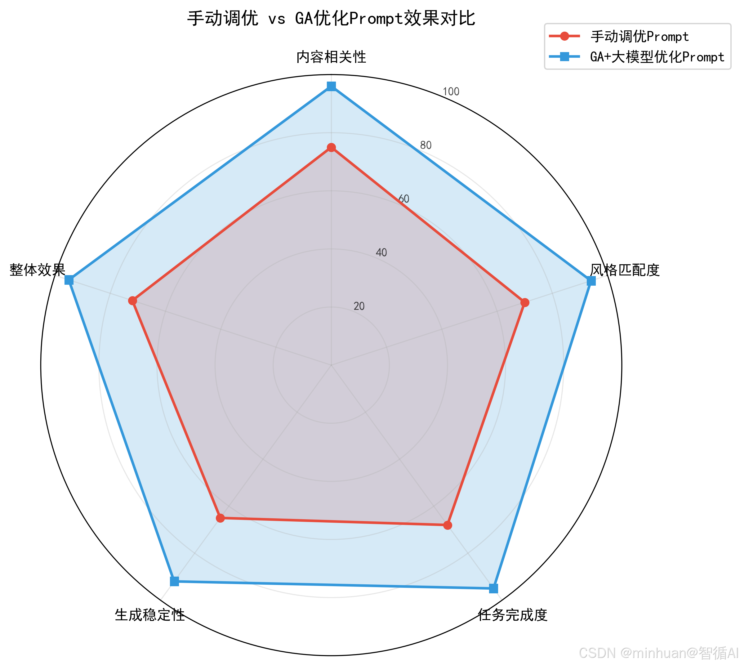手动调 Prompt 本质是 "经验驱动",依赖人的主观经验和试错,而 GA + 大模型是"算法驱动":