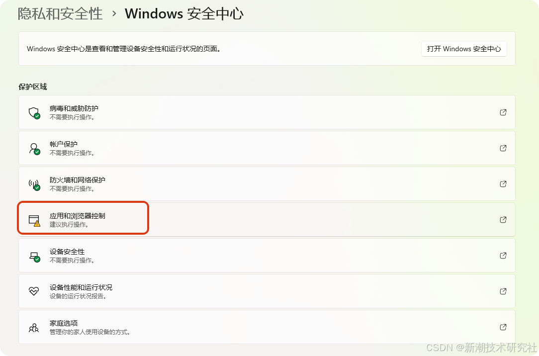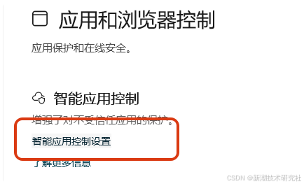 我们经常需要运行一些注册机类的程序,但是Windows智能应用控制会阻止这些程序的运行,所以有时候需要关闭这个智能应用控制。当然了,你也可以直接开始菜单中搜索应用与浏览器控制。