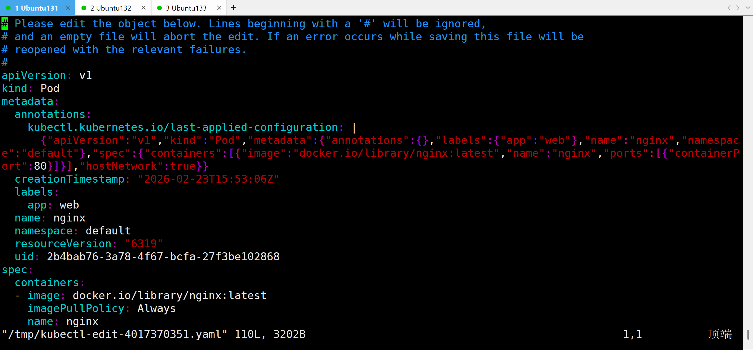 kubectl edit pod nginx
