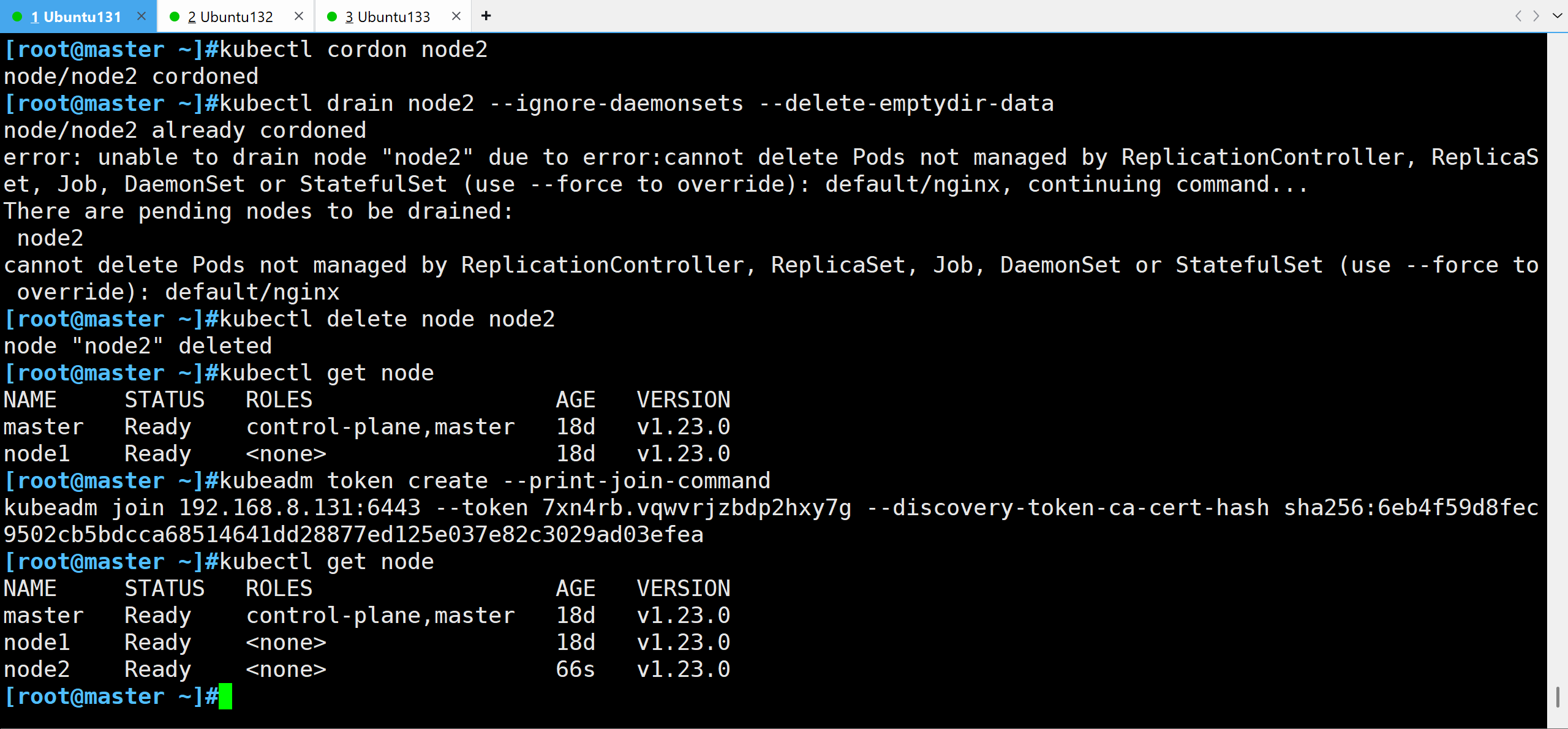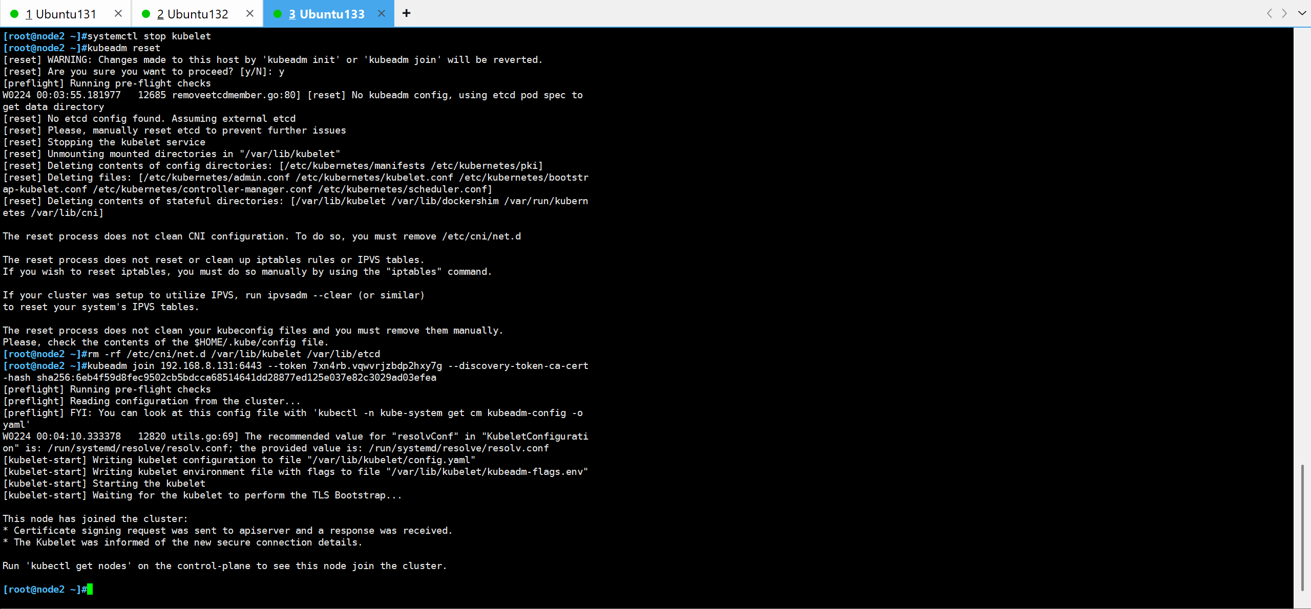 kubeadm join命令ini#systemctl start kubelet kubeadm join 192.168.8.131:6443 --token 46s6gy.t1fl09u3fzfpqbaq --discovery-token-ca-cert-hash sha256:6eb4f59d8fec9502cb5bdcca68514641dd28877ed125e037e82c3029ad03efea