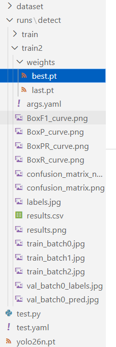 训练脚本很简单,我们以yolo26n.pt模型为预训练模型,然后训练的数据描述文件也就是我们刚才写的那个。