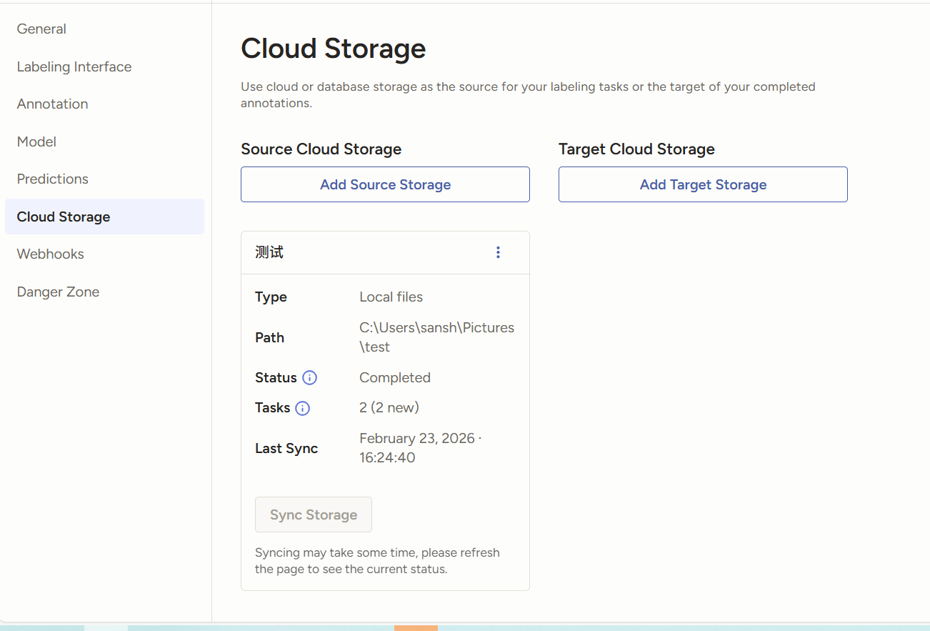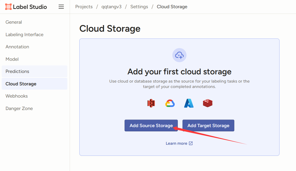 点击add source storage(此处从本地导入,如果是从云库导入的话,可以看它的帮助文档)