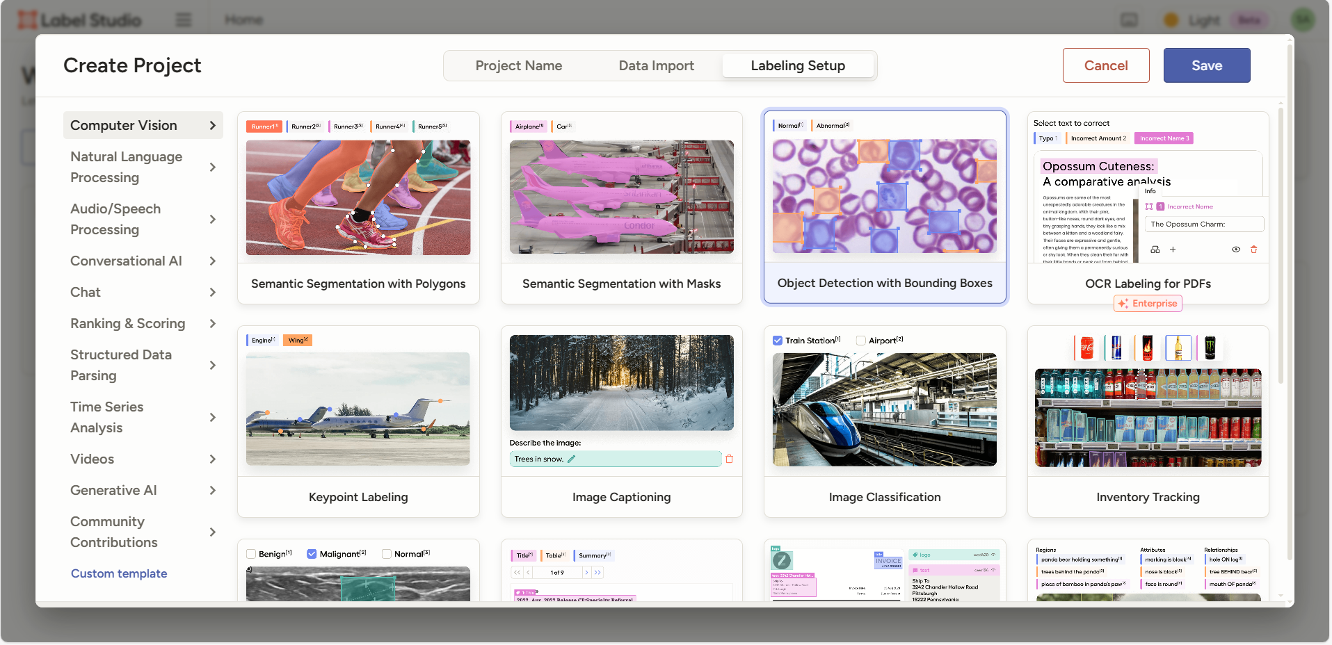 下一步,到这里我们看到有很多模板,例如第一个是几何形式分割识别对应yolo26-seg,第二个是以位图的形式分割识别,这个也对应yolo26-seg。