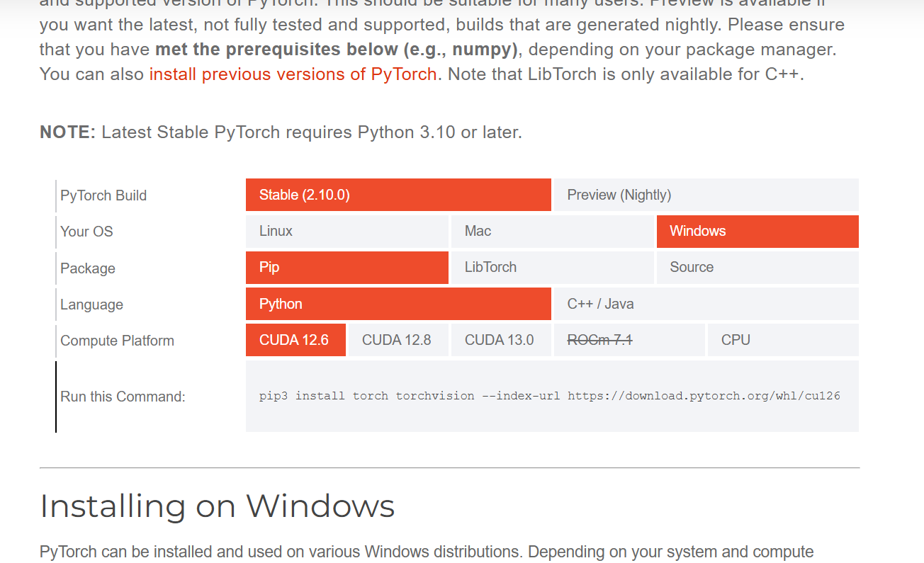 根据你的显卡情况选择cuda版本,如果没有显卡就选择cpu(有显卡,显卡好的训练的快,或者懒得搞显卡驱动也可以cpu先用着)