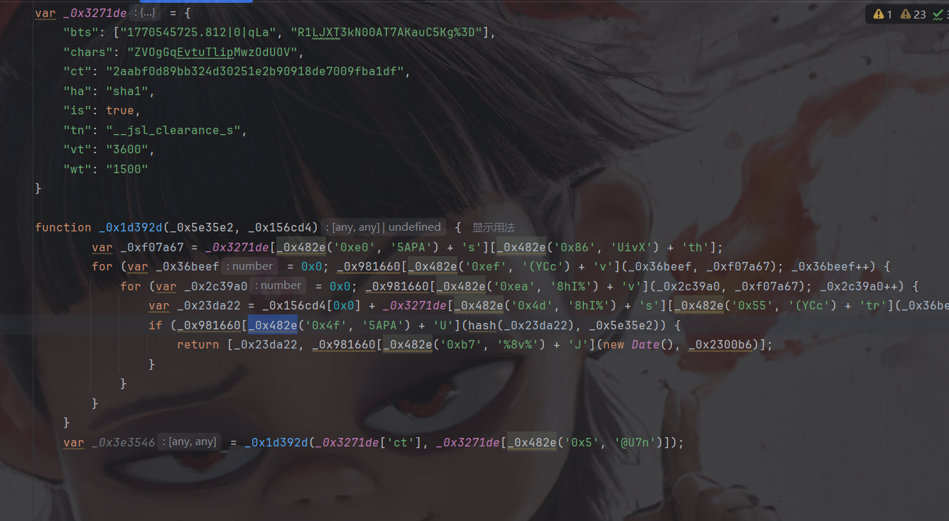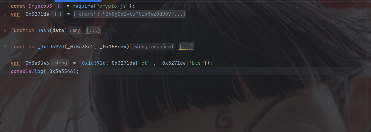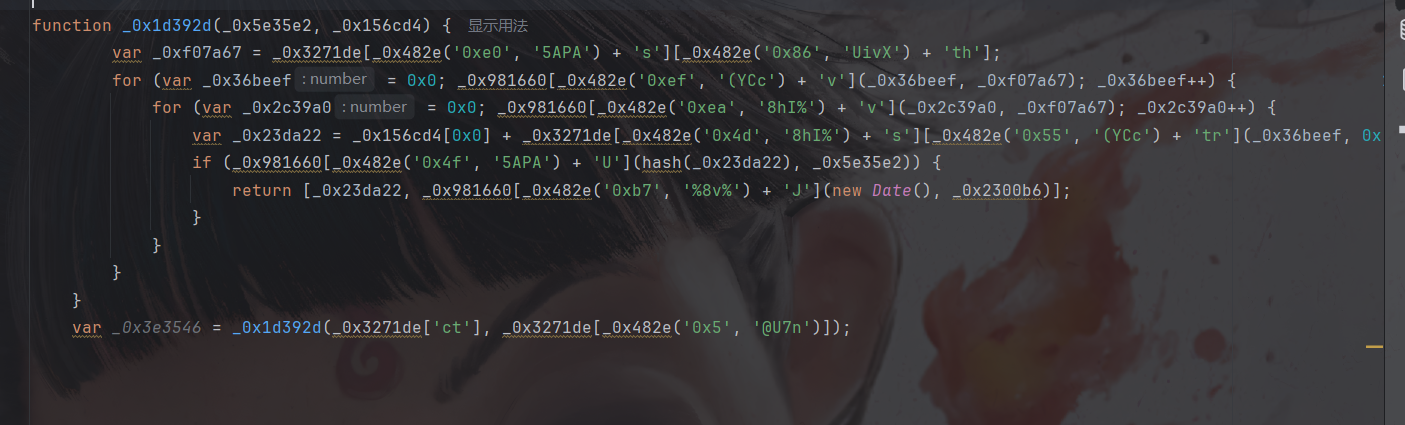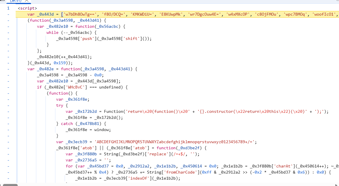 然后可以选择将解密函数,大数组,自执行拿过来(这么拿的话基本就相当于全扣了),然后将一些第一个参数作用在第二个参数的函数手动删除,但我选择手动还原一下: