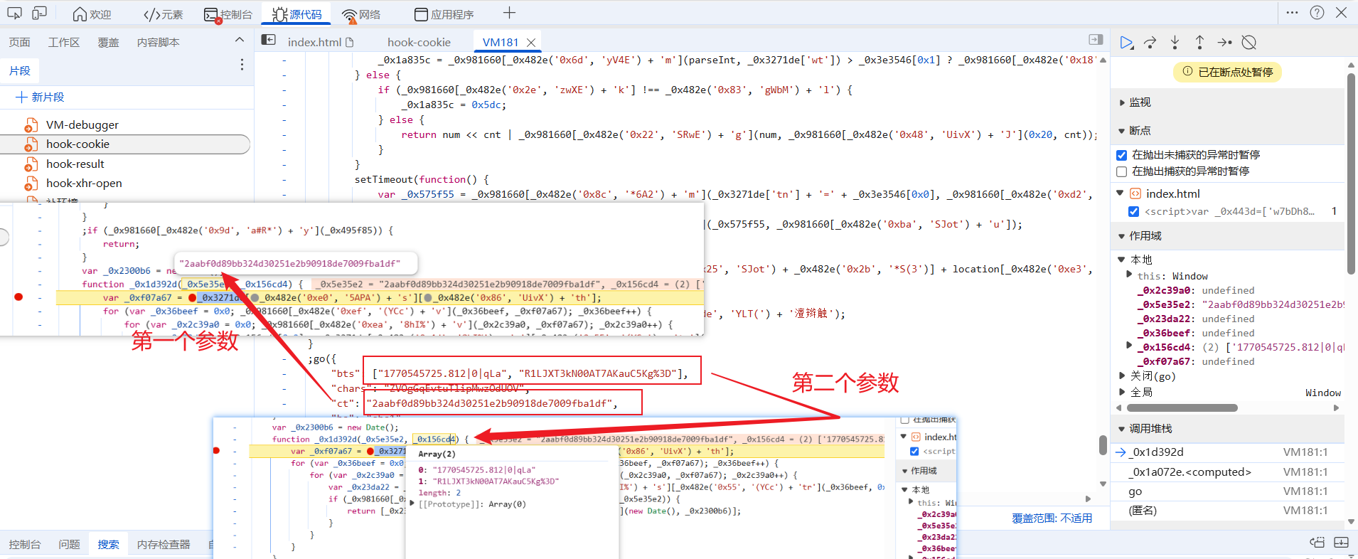 打开hook-cookie,hook到之后来到上一个栈: