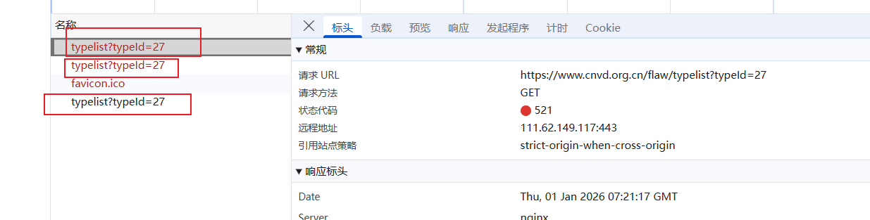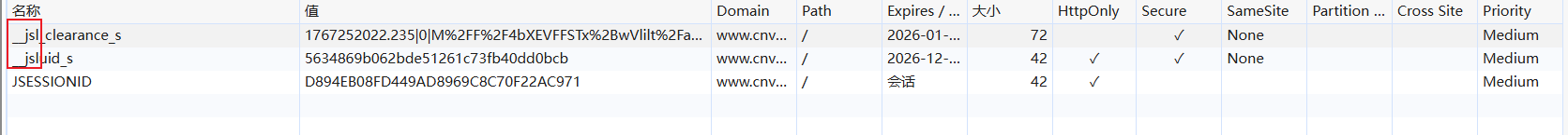 - 请求三次,前两次请求失败状态码为521,或者cookie名字为jsl开头: