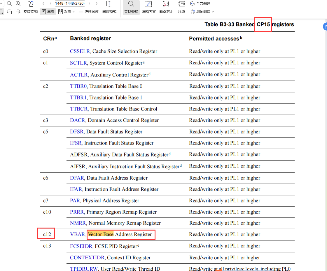 - CP15,提供系统控制功能,主要用于配置MMU、TLB和Cache、异常向量表的地址设置