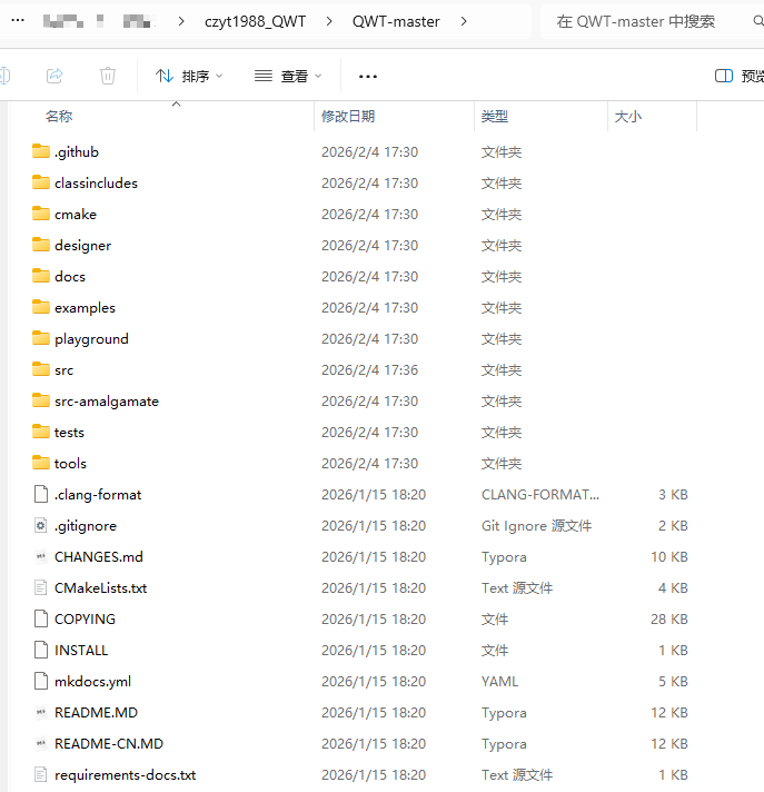 bashgit clone https://github.com/czyt1988/QWT.git克隆后文件结构 如下: