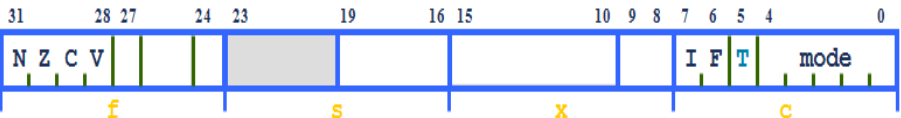 msr{cond} cpsr{_fileds}, <Rm> / msr{cond} cpsr{_fileds}, <立即数> @向cpsr写入