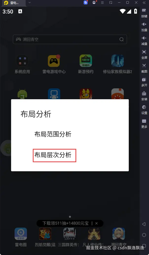 1.点击Autojs悬浮窗,再点击"布局分析"按钮。