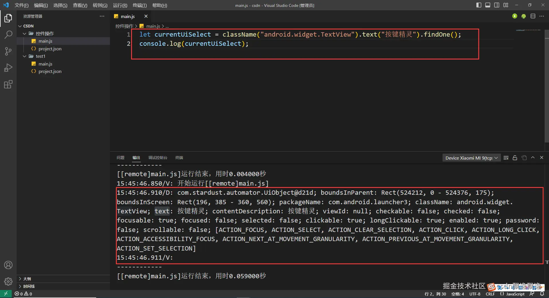 let currentUiSelect = className("android.widget.TextView").text("按键精灵").findOne();