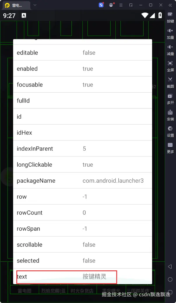 控件操作也有有个大优势就是有时候不受屏幕限制,比如手机主界面启动应用,因为应用名唯一,可以通过控件的点击方式启动。好像这种启动方式,屏幕在哪个地方无所谓,他会自动划过去启动应用。有小伙伴会说了,不是有启动应用的接口吗?为什么还用这种笨蛋方式。我想说的是,那种直接启动的方式会有内存残余,启动应用越多,切换次数越多越容易崩。不要问为什么?因为我被搞崩过,有其他可以快速启动应用的方式吗?我回答是有,而且不会有内存残余,但是需要root环境,因此这种控件启动方式才是最常用的。