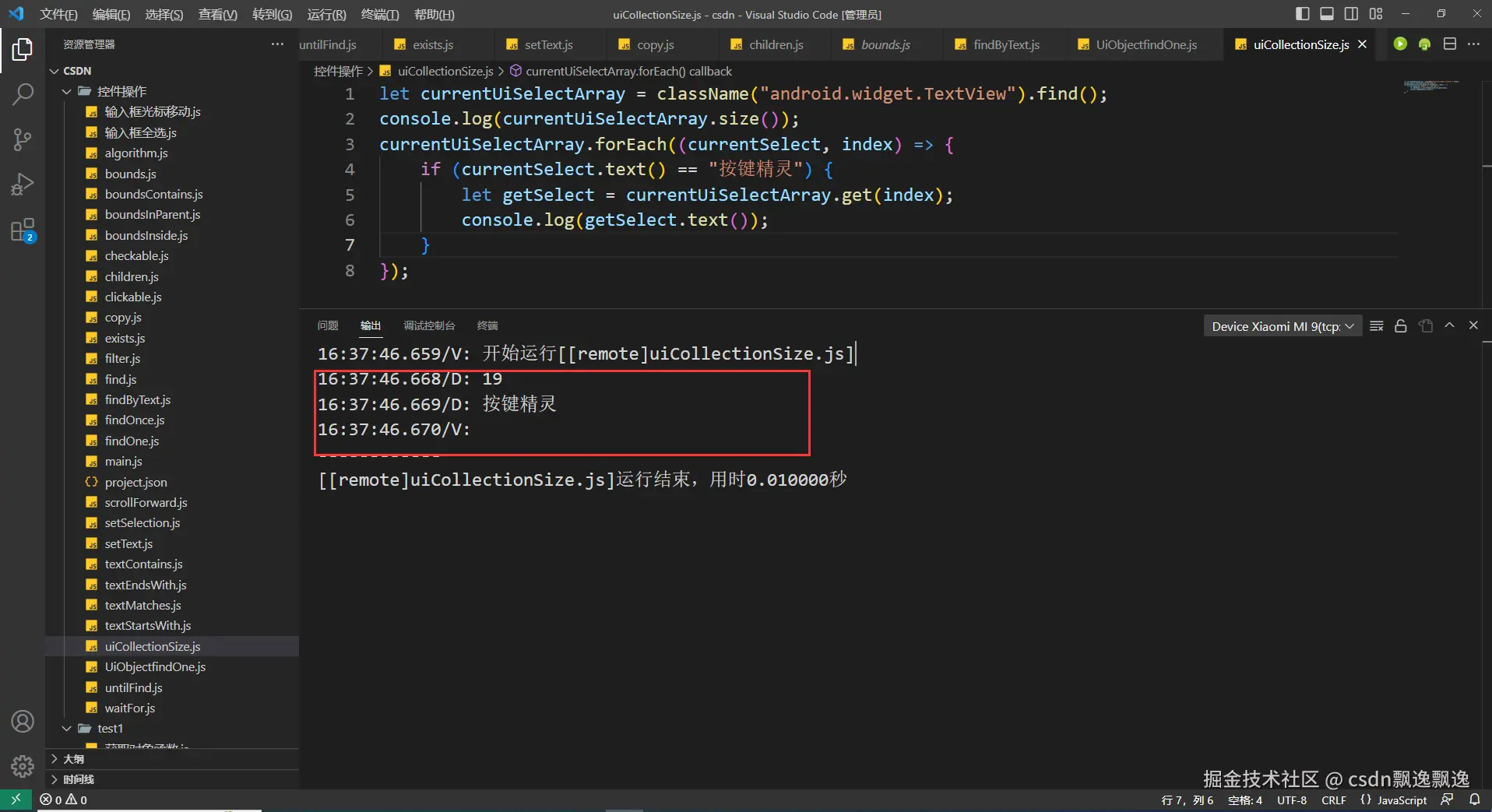 此函数用于集合遍历,类似于js中的数组遍历。但是,这个函数只能和我下面那样调用,不支持箭头函数,同时函数只返回控件信息一个参数,不会返回当前索引。因此,一般情况下,我们不会使用这个函数,将控件集合当做普通的js数组进行遍历,反而功能更加齐全,还能支持箭头函数。