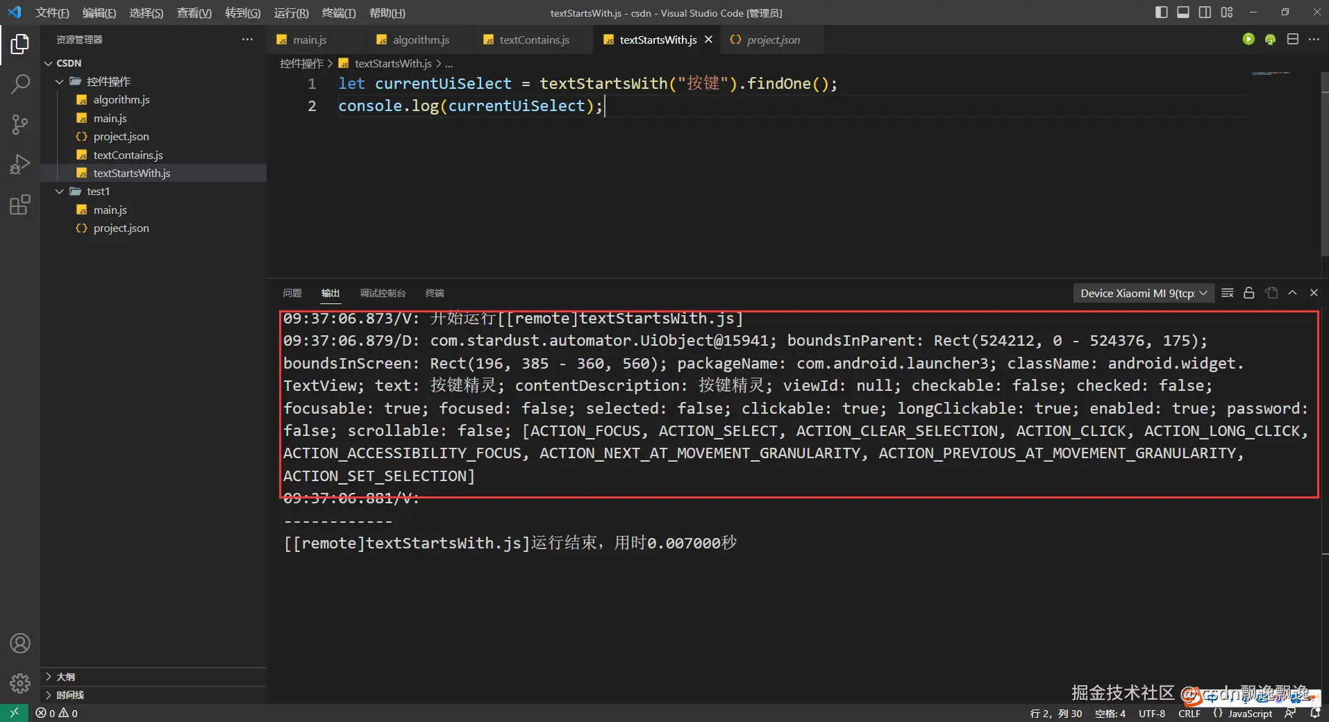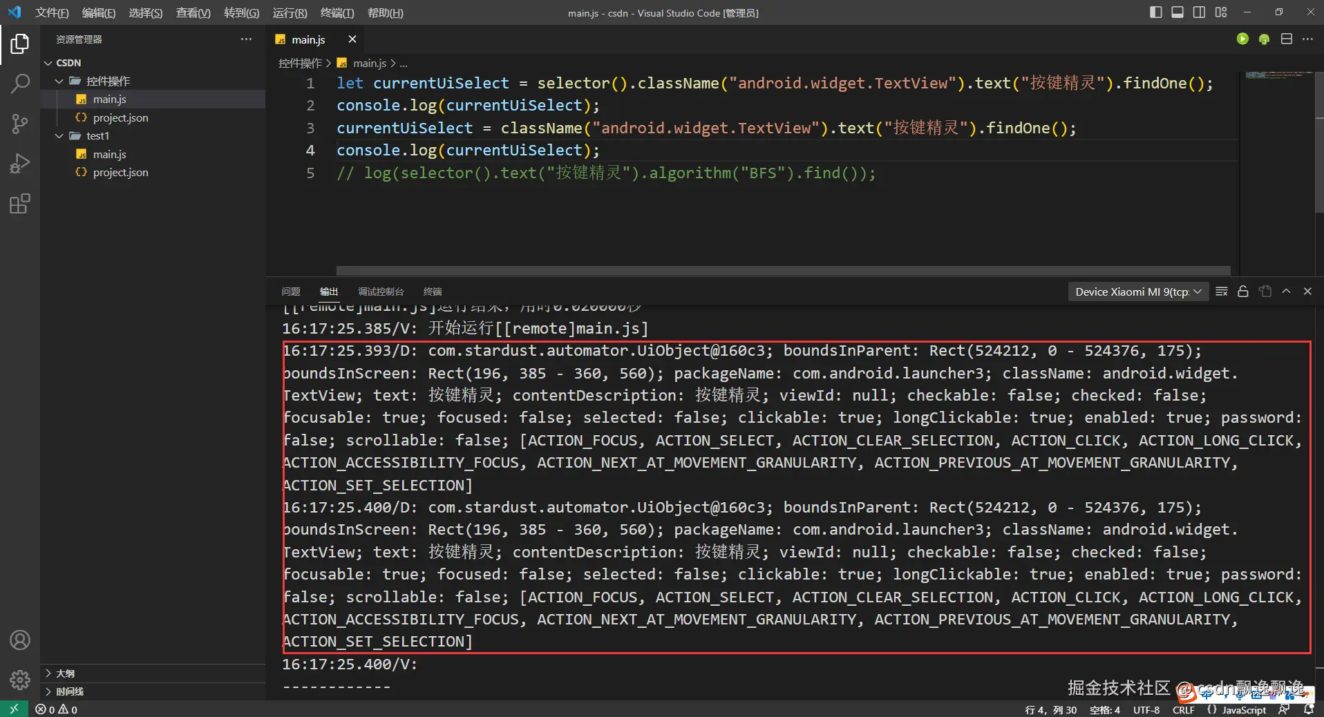 let currentUiSelect = textContains("键精").findOne();
