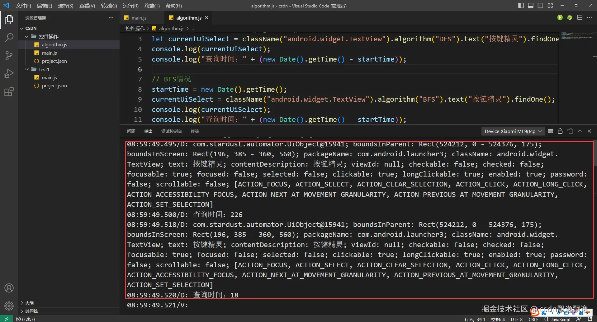 根据上面情况,可以判断出来,两个算法搜索速度差距不大。一个7毫秒,一个8毫秒,差距才1毫秒,其实只要速度不超过1秒,很难看出来。有些小伙伴运行时,可能出现和我下面情况类似,比如第一个算法226毫秒,第二个算法18毫秒,虽然实际使用过程中很难发现差距,但是速度是接近十倍的差距。其实,这并不是算法搜索速度导致的,因为这是第一次执行控件搜索,里面包含一个控件代码初次加载的时间。把哪个算法放在第一个位置,初次加载都会慢一些,你可以重新执行一次看下,搜索时间差距几乎可以忽略。
