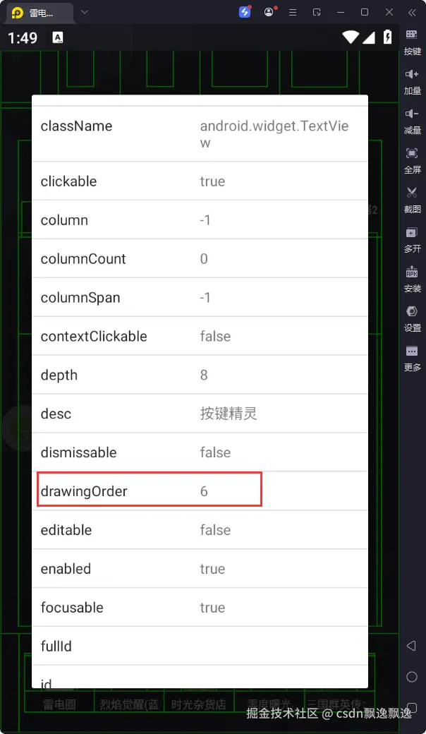 对应控件信息中的drawingOrder内容,参数类型为数字,用于获取drawingOrder数字与参数数字一致的控件。
