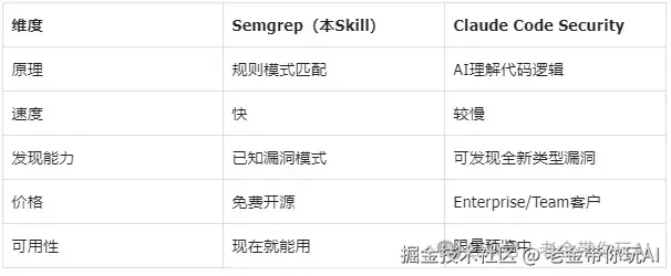 日常开发用Semgrep做基础安全扫描,等Claude Code Security开放后再升级。 两个工具解决不同层面的问题,不冲突。