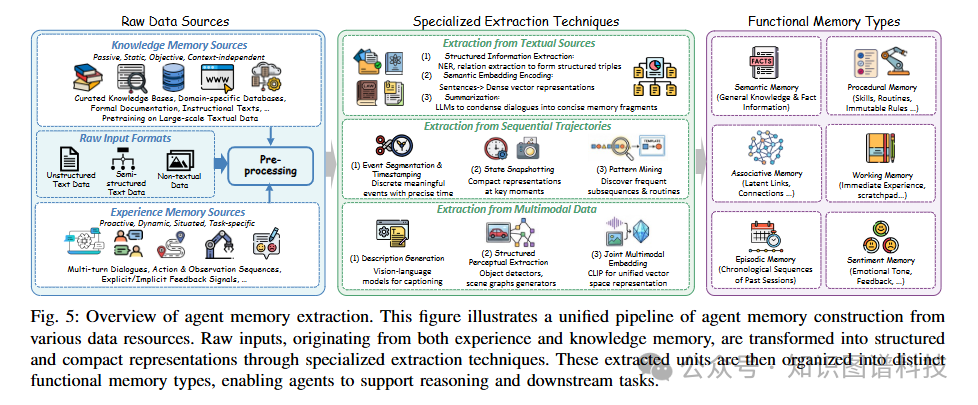 记忆提取是构建智能体记忆的第一步,涉及将原始数据转换为有意义的记忆表示 。这个过程通常跨越三个抽象层次: