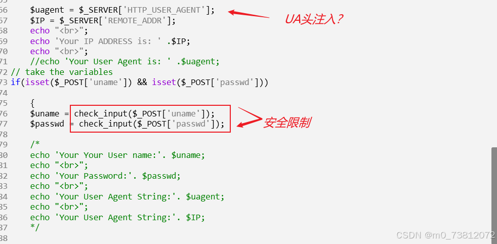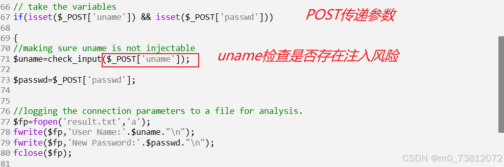 (1) 用户名 ($uname): 调用了 check_input() 函数,有效地防御了大部分针注入