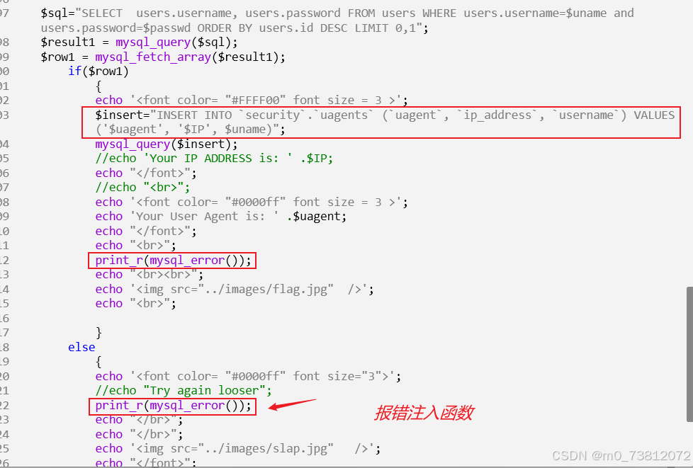 VALUES ('[你的逻辑结果]', '$IP', $uname)- 如果登录成功:IP** 和 **uname 有值,语句语法正确,注入成功并报错。