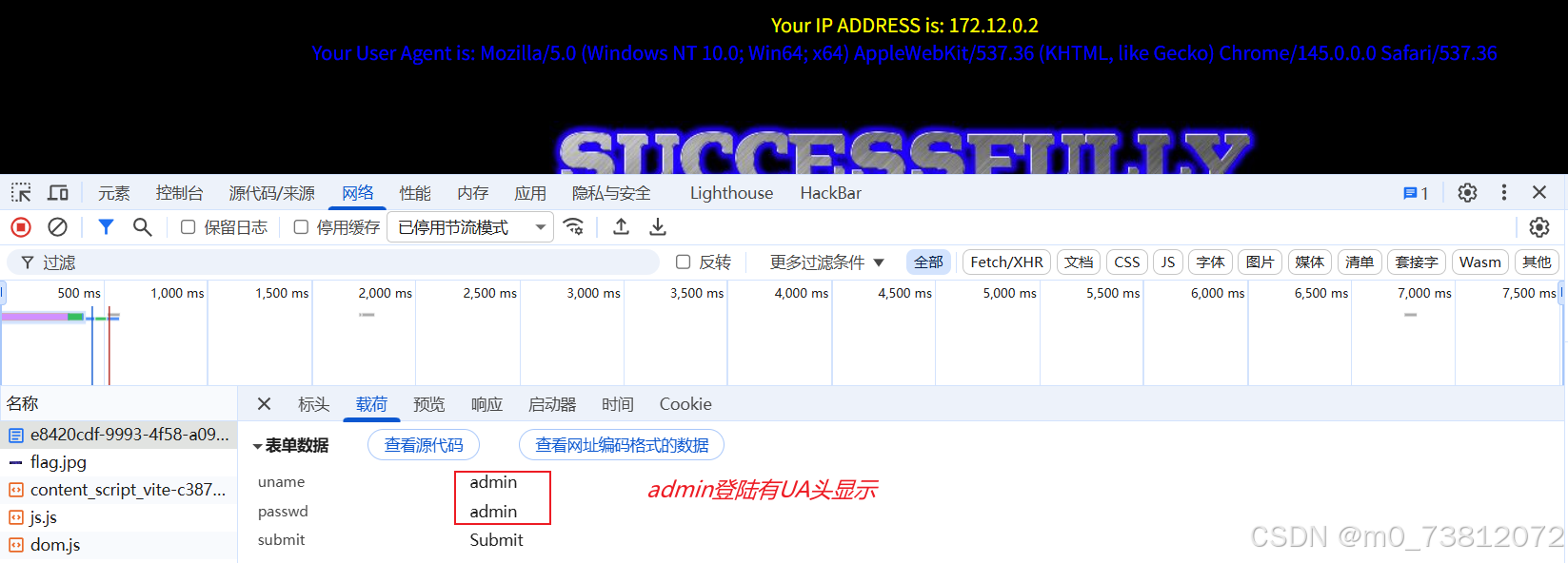 - 用admin登录成功后发现有User-agents显示