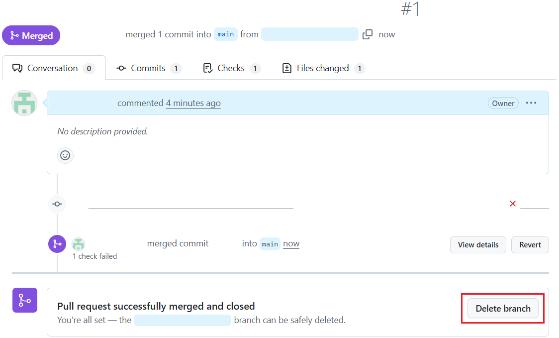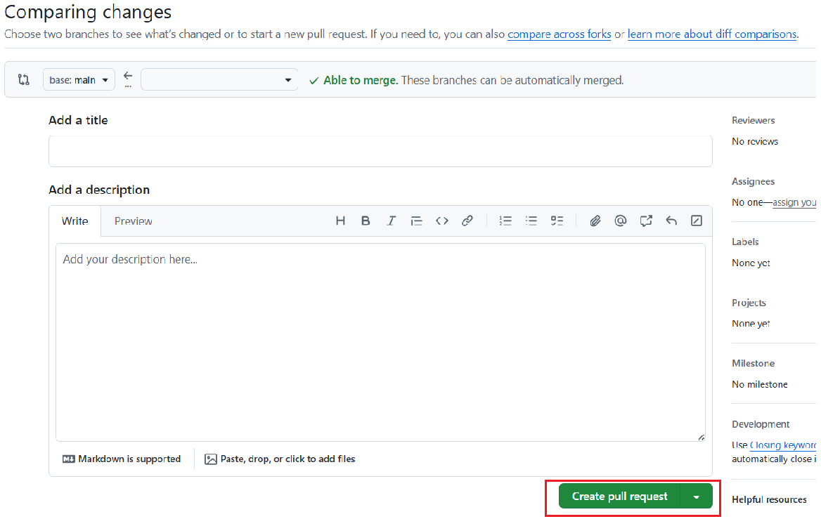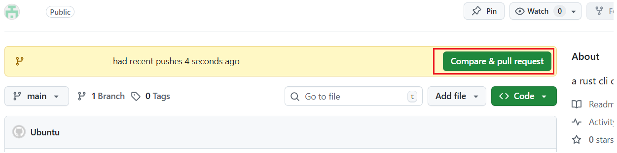 之后在GitHub上可以看到上面创建的新分支,点击Compare & pull request,输入pr信息后创建新的pr(Create pull request),review后merge(建议以squash commit merge),merge后删掉新分支,这种新分支属于临时分支。