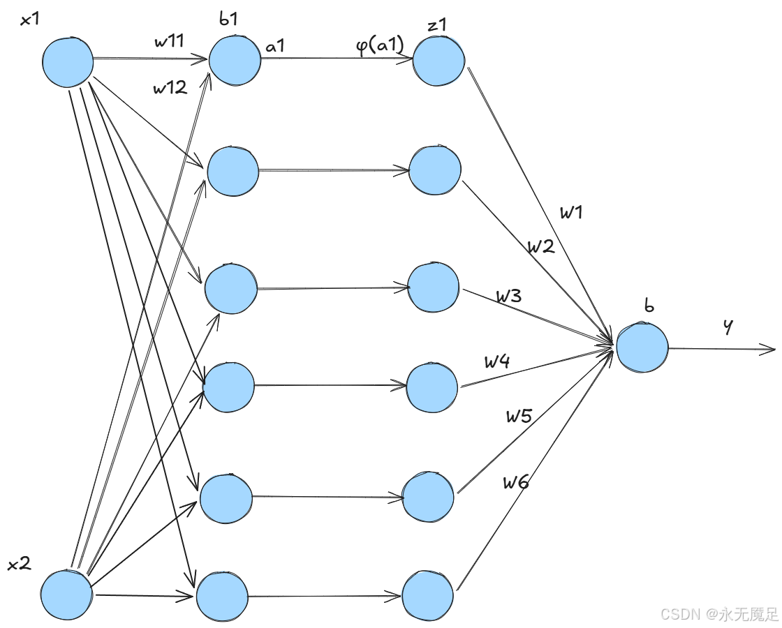 两层神经网络结构并不能模拟出来,如图: